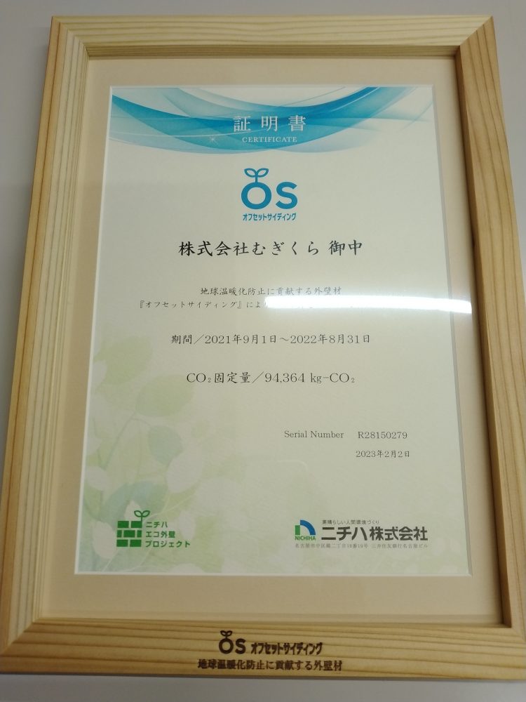ニチハ様の場合は、窯業サイディングに端材の木材チップが含まれており、それを外壁材に使用することによって、木が吸収したCO2の放出を防止(固定化)することにより、環境に貢献をしています。