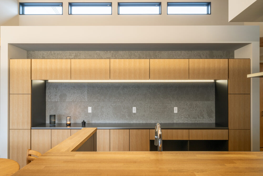 キッチンはIHや食洗機など嬉しい標準装備はもちろん、背面収納部には間接照明でよりおしゃれな空間に仕上げました。