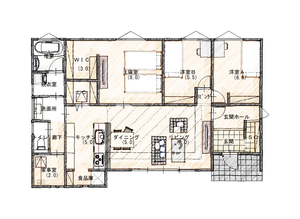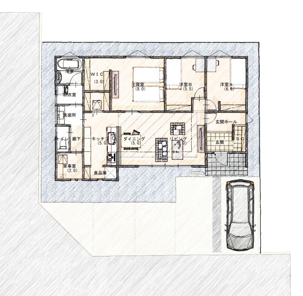 間取り:3LDK+WIC+SC+LC+パントリー+家事室