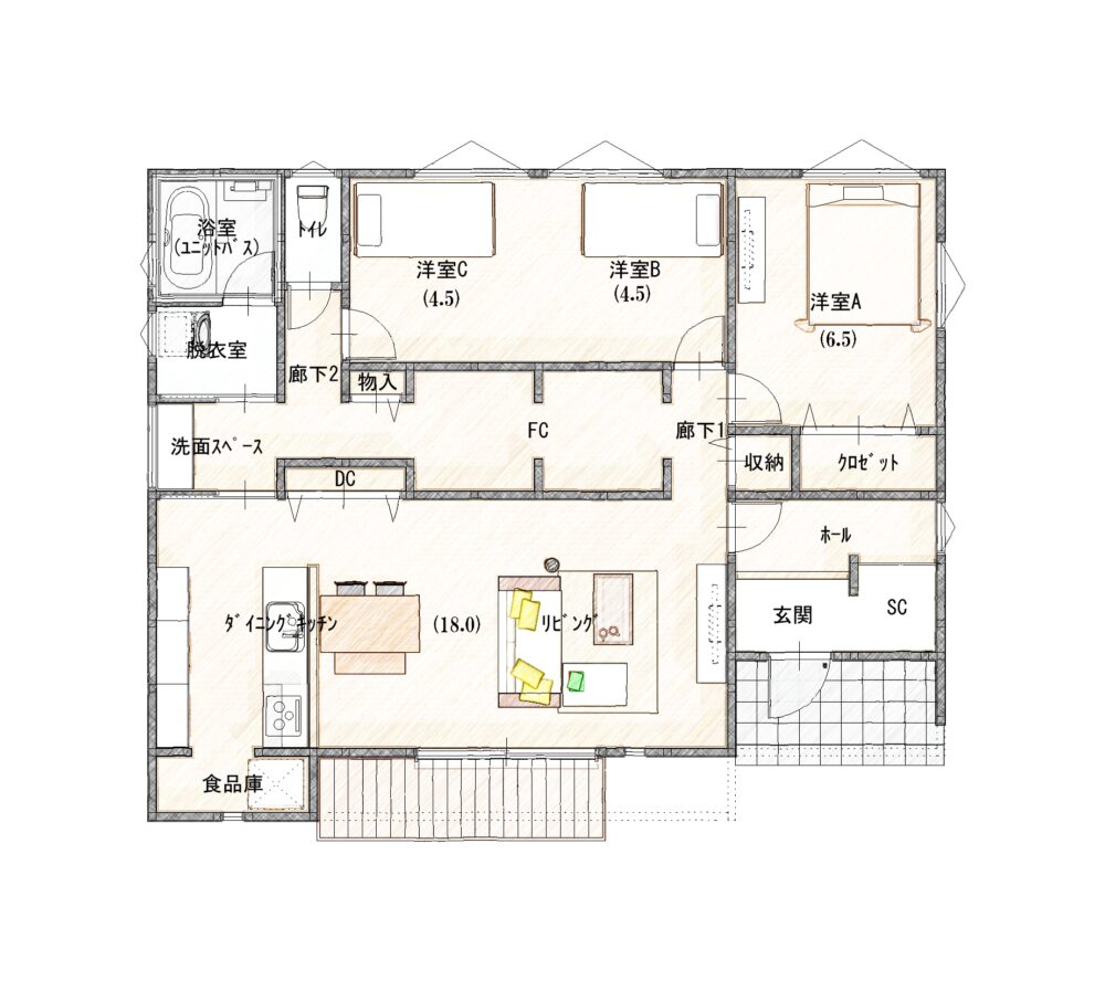 むぎくらの建売は家具や雑貨、カーテン(写真に写っているものです)もセットになっています。