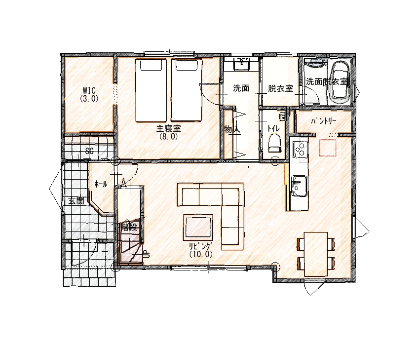 1階に主寝室があるので、将来的に平屋のような使い方もできるような間取りです。