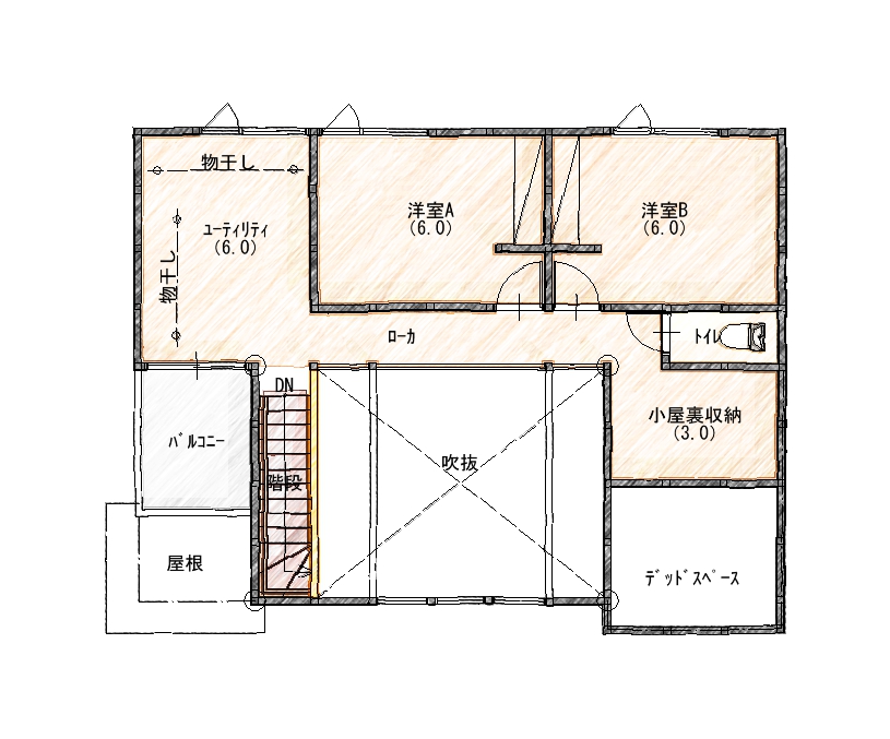 間取り:3LDK+ユーティリティスペース+小屋裏収納