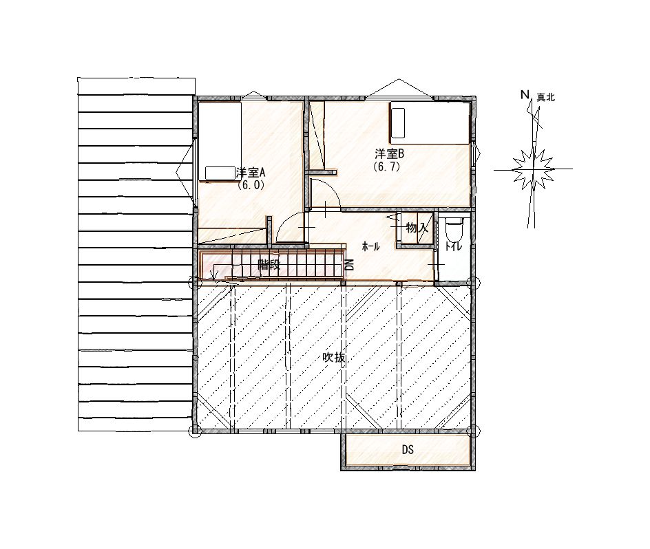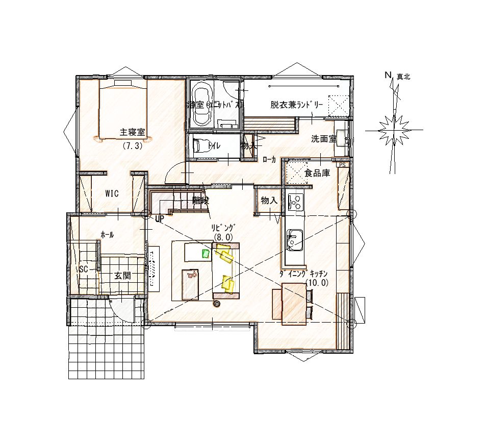 開放的な吹抜とスムーズな動線で暮らせる半平屋