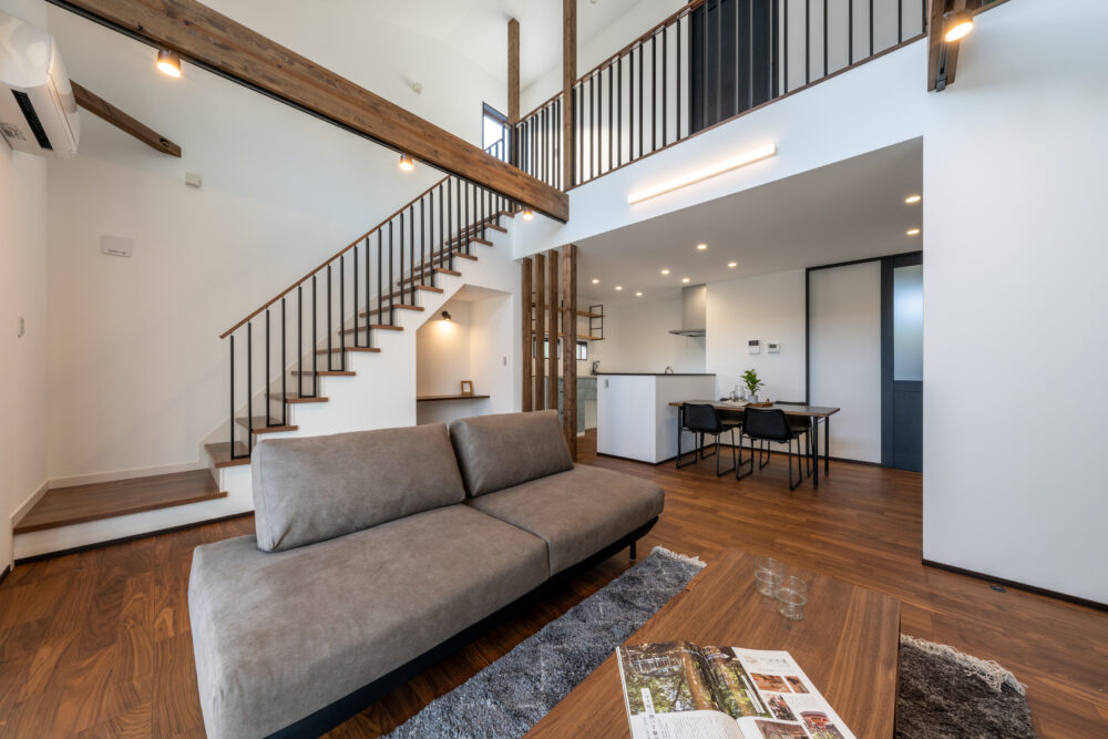 大きな吹き抜けが特徴の半平屋の物件となっております。