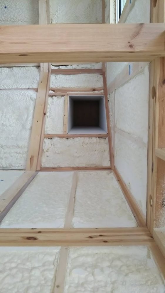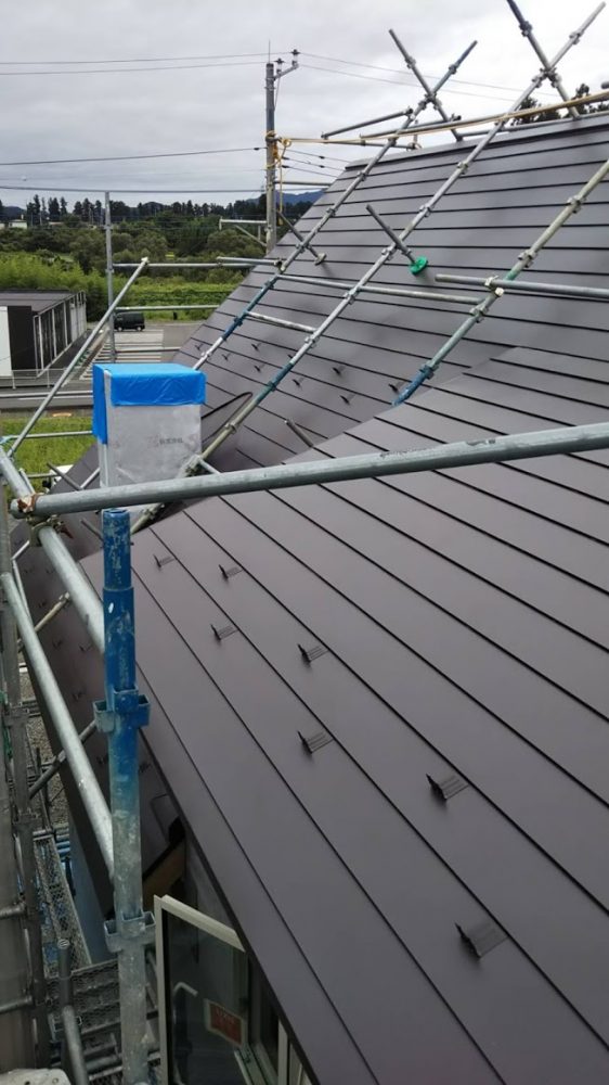 建物内部に、薪ストーブを設置する為に 屋根に煙突が完成しました。