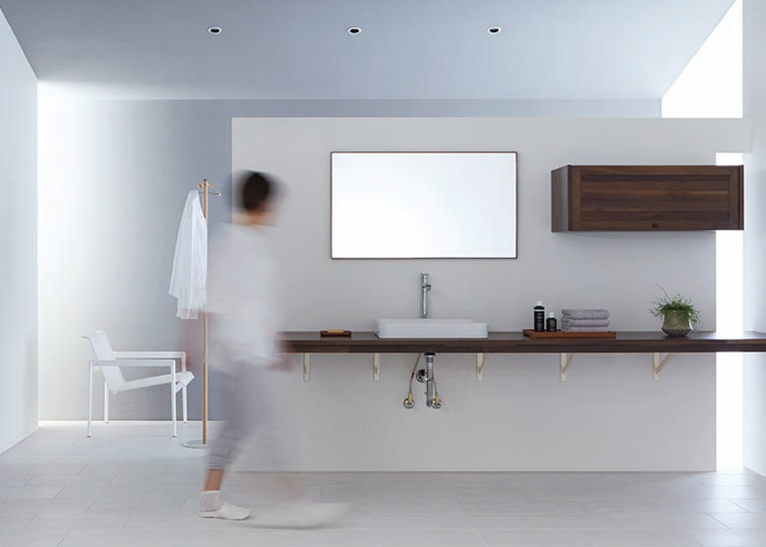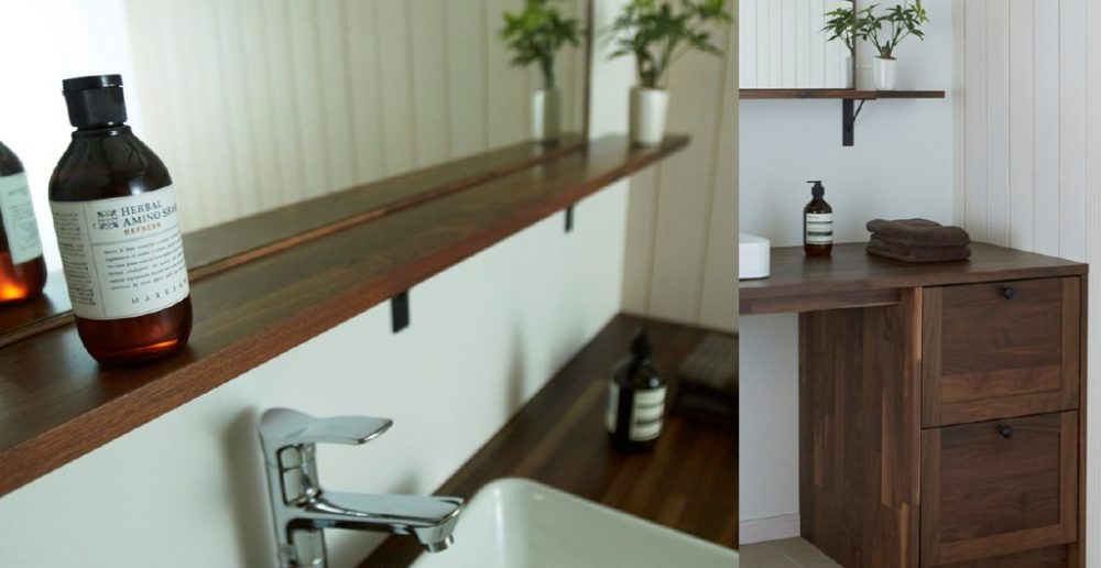 画像にもありますが、木材の質感や温かみを意識した洗面台です。