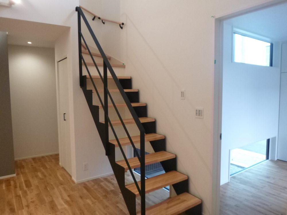 内部のカッコいい(手前味噌ですが)金属階段の取り付けがすみ、上下移動がラクになりました。