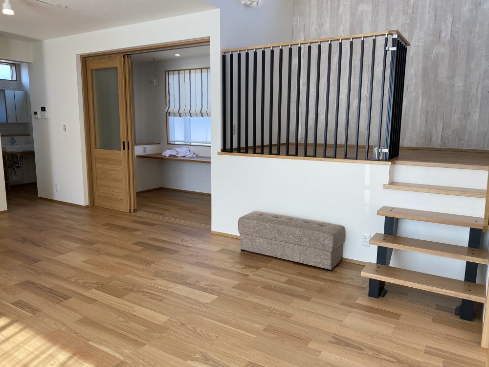 今回は階段途中にあるスキップフロアにデザイン性の高い階段と手摺が取り付きました!