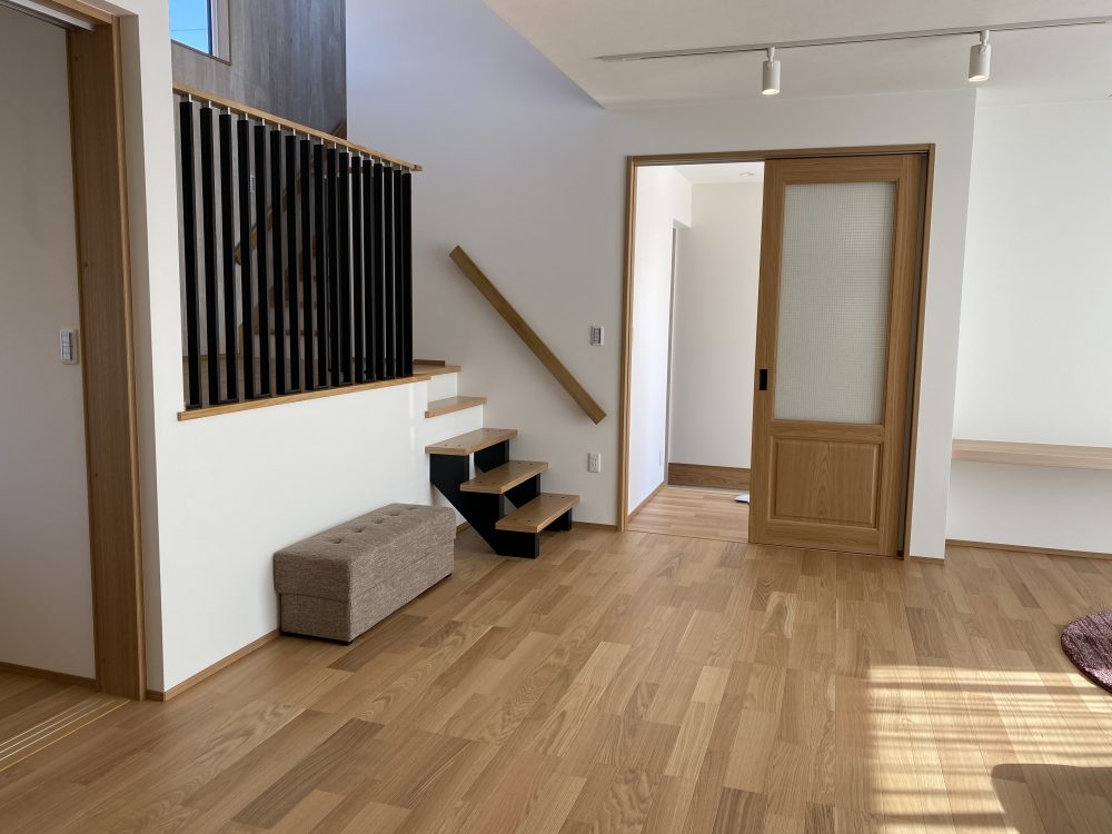 スキップフロアにある4つの窓からの明かりも遮ることなくリビングに降り注ぐいでます。