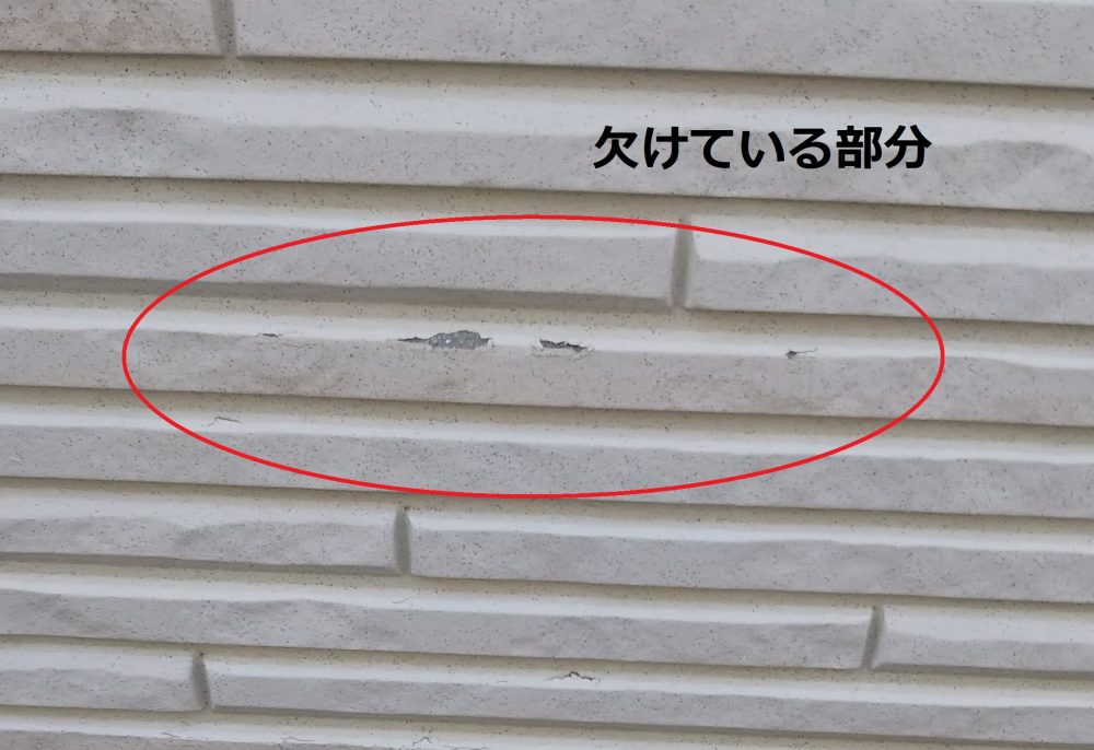外壁の欠けは、防水性を損なっている状態ですので、そのままにしておきますと雨が染み込み、冬場に凍結による破裂を起こす場合がございます。