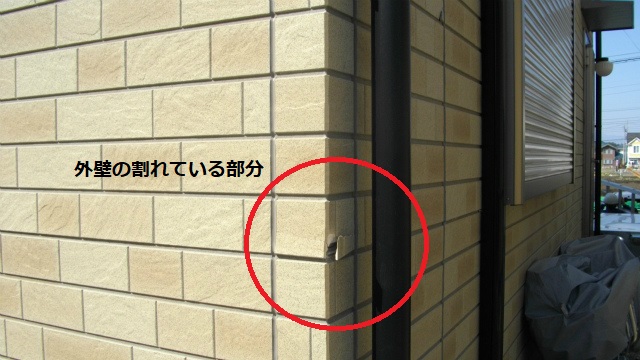地震や風による建物の揺れや風による飛来物により外壁にひびが生じる場合がございます。