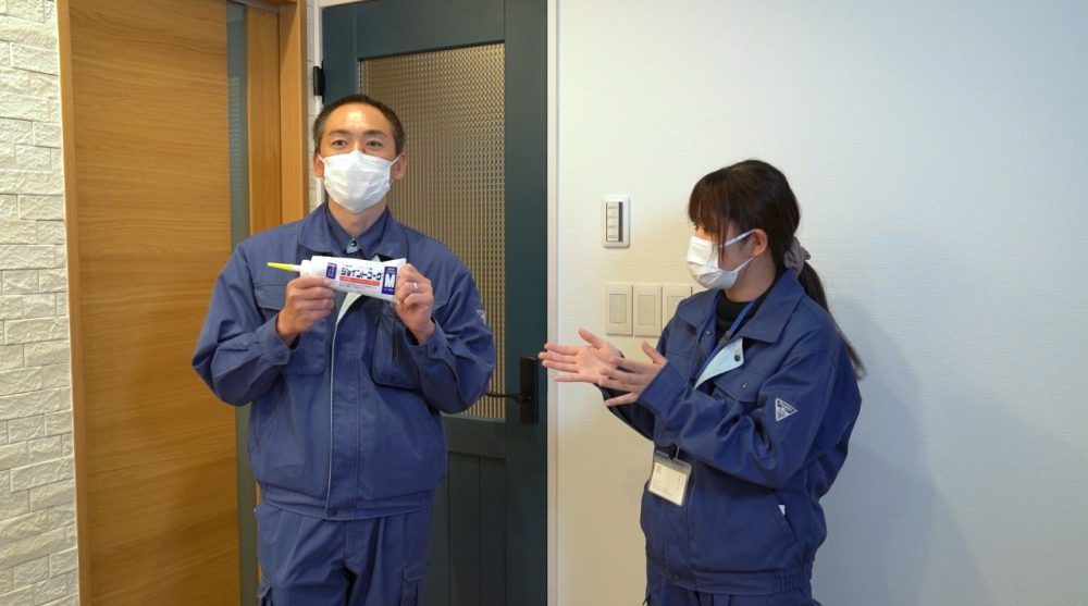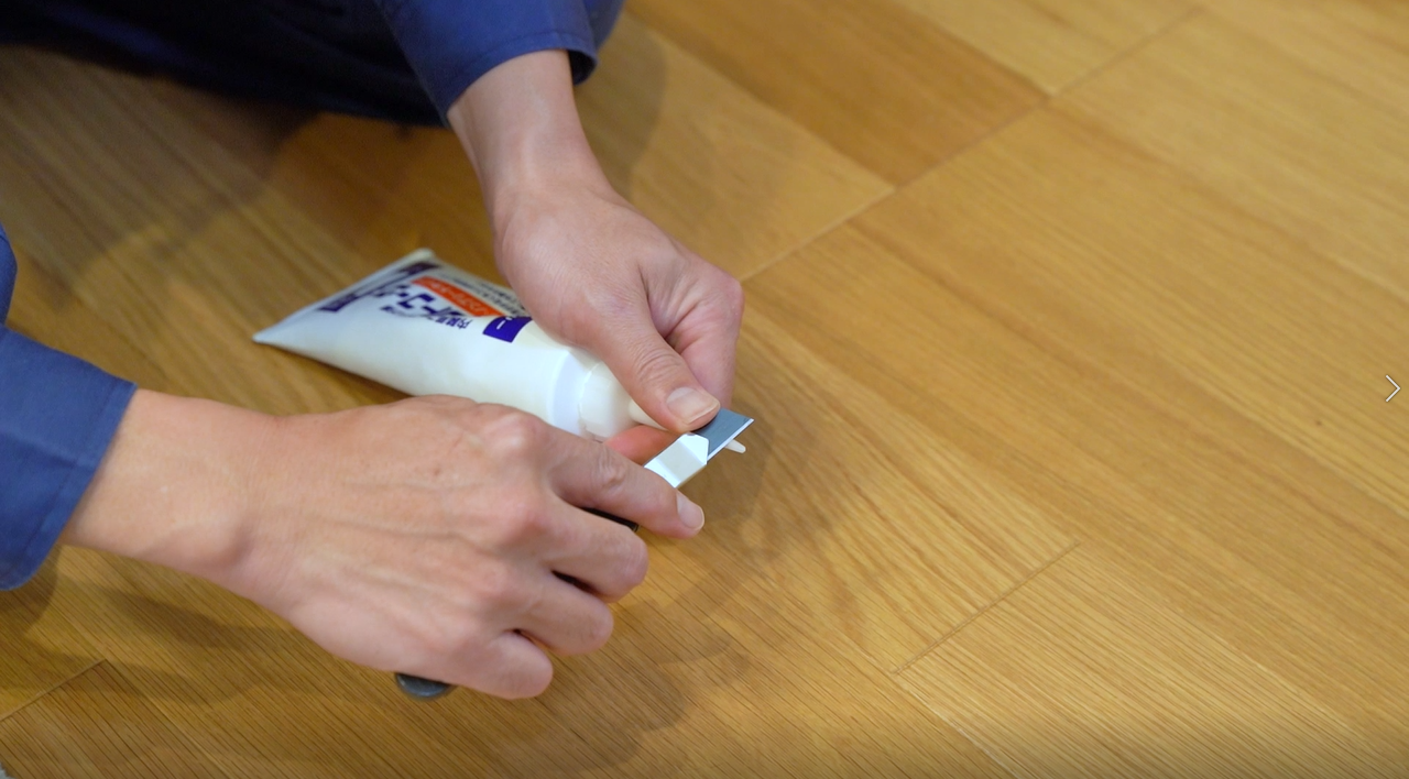 隙間に沿って絞り出し、指で絞り出したところをなぞるときれいに仕上がります。