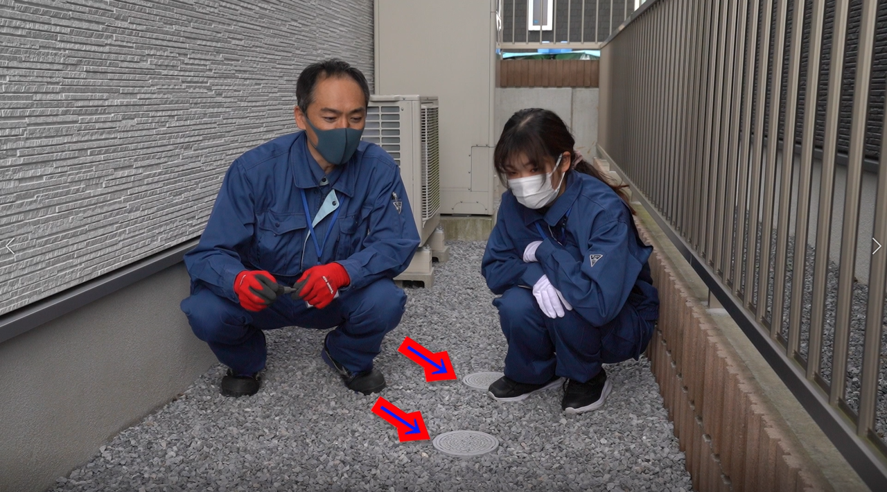 周りに砂利等ある場合は、桝の中に入らないように気を付けながら作業を行ってください。