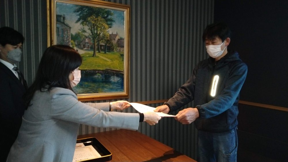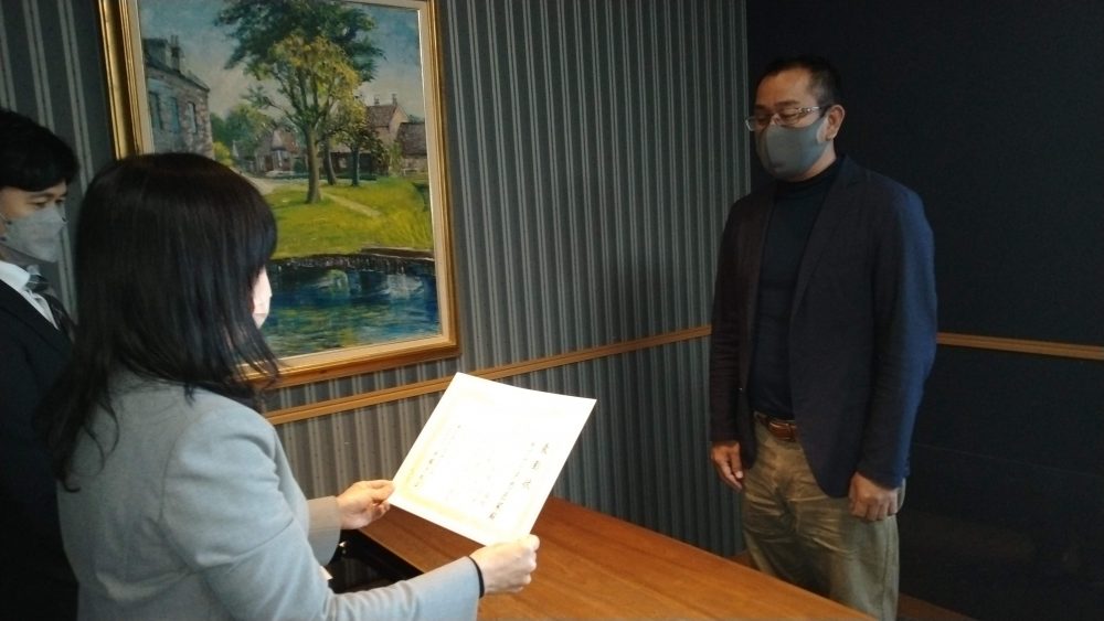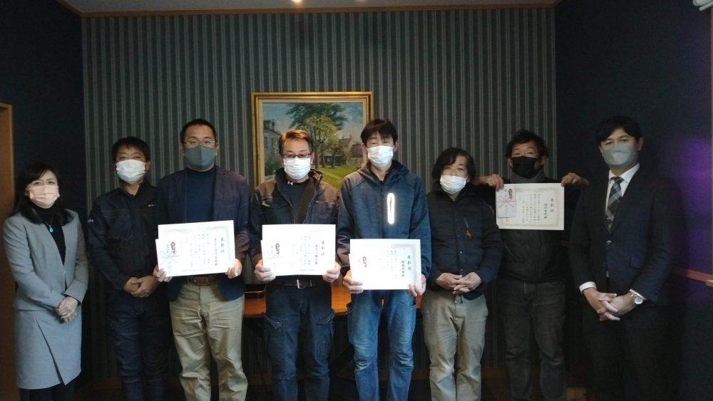 昨年に引き続き今年も新年会は見送りになりましたが、厳しいコロナ禍の中、頑張って頂いていることを鑑み、簡易的ではありますが当社社屋にて表彰式を執り行わせて頂きました。