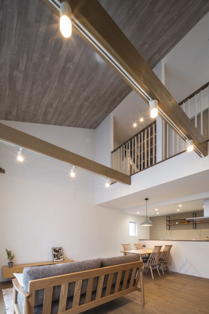 天井を高くすることで、視覚的に空間が広く感じられ、自然光が家全体に差し込むことで、明るく開放的な空間を演出できます