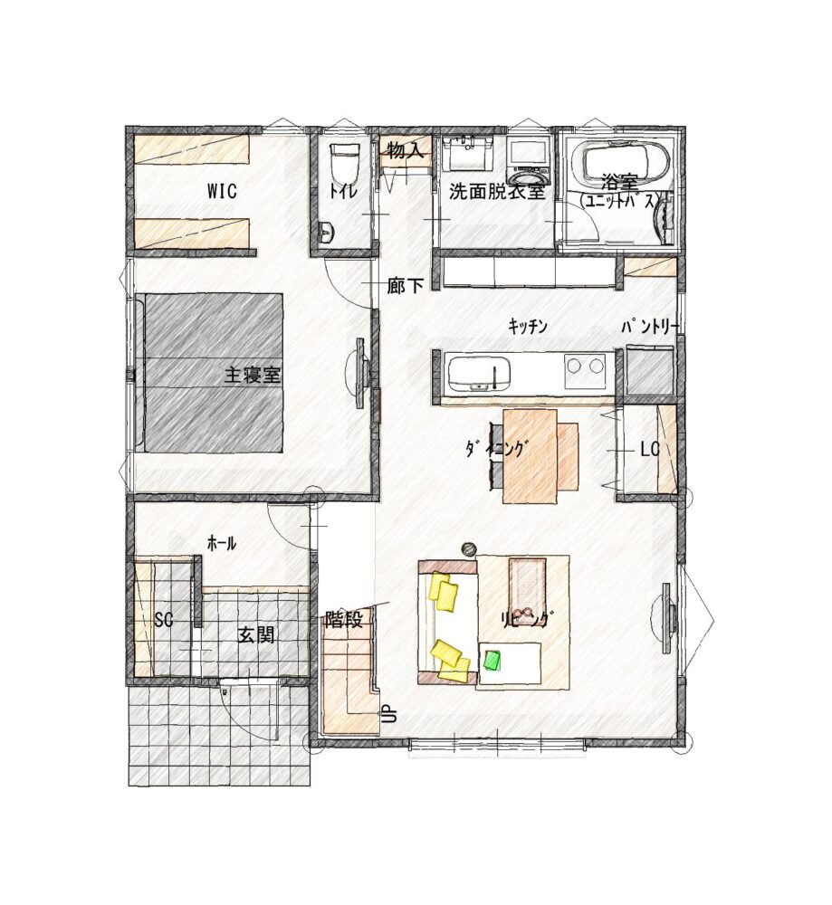主寝室も1階に設け、将来まで安心して暮らせる間取りです。