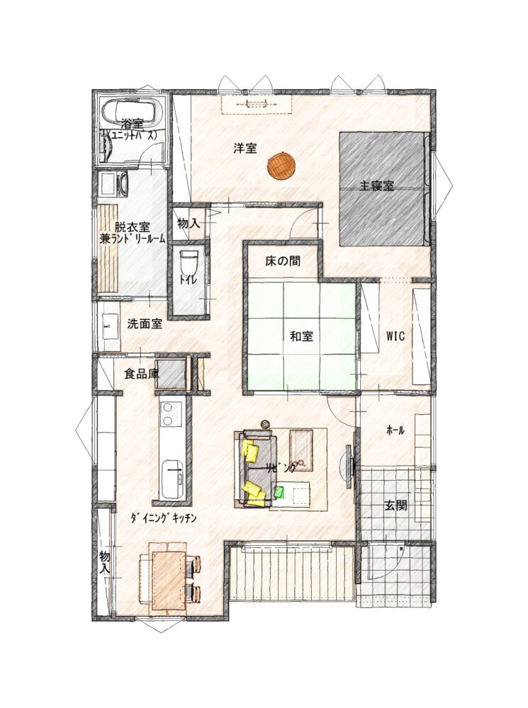 ライフスタイルの変化に合わせて部屋を仕切れる平屋