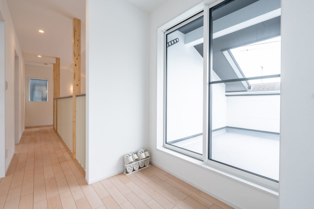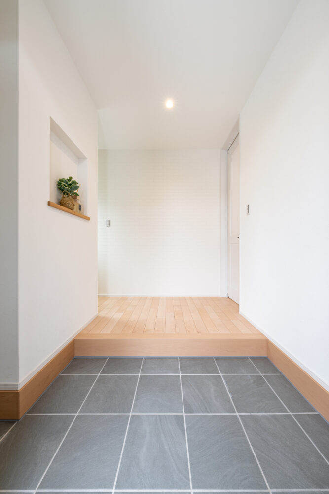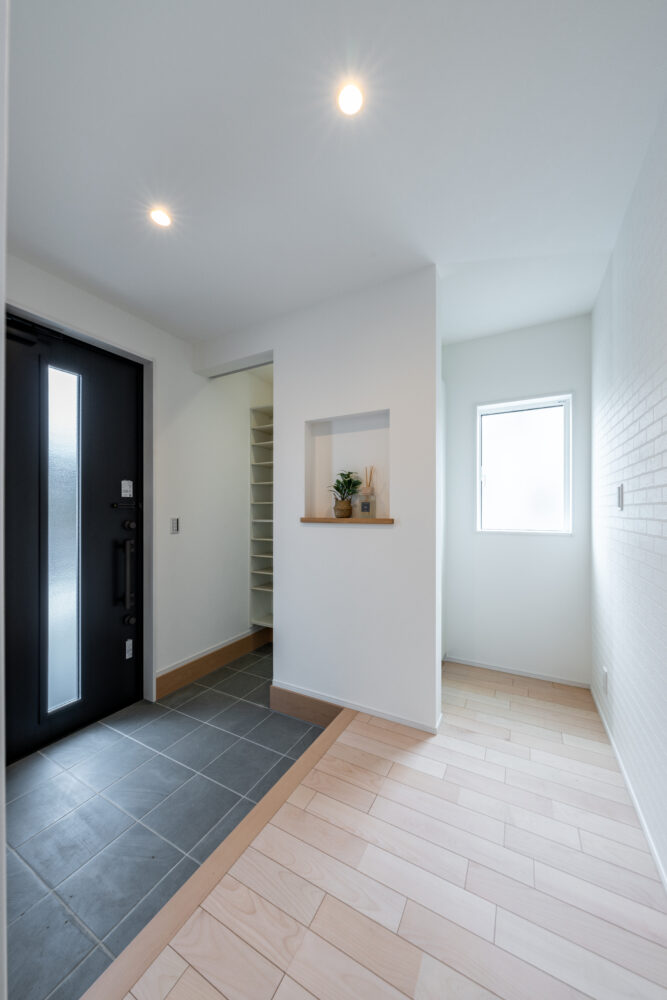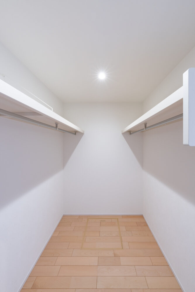 玄関から通り抜けられるシューズクロークは、来客用と家族用で使い分けができ、玄関をすっきりと見せることができます。