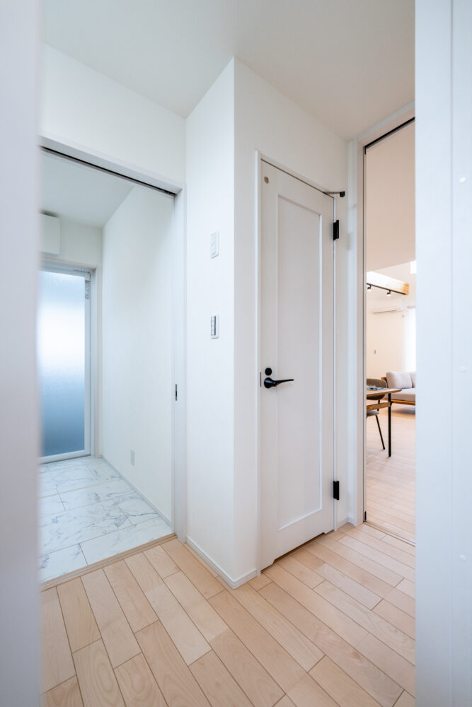 1階にはリビング、キッチン、水回りだけでなく主寝室とWICがあるため、就寝時や洋服を片付ける際に2階に行くことなく、日々の生活動線をシンプルにまとめることができます。