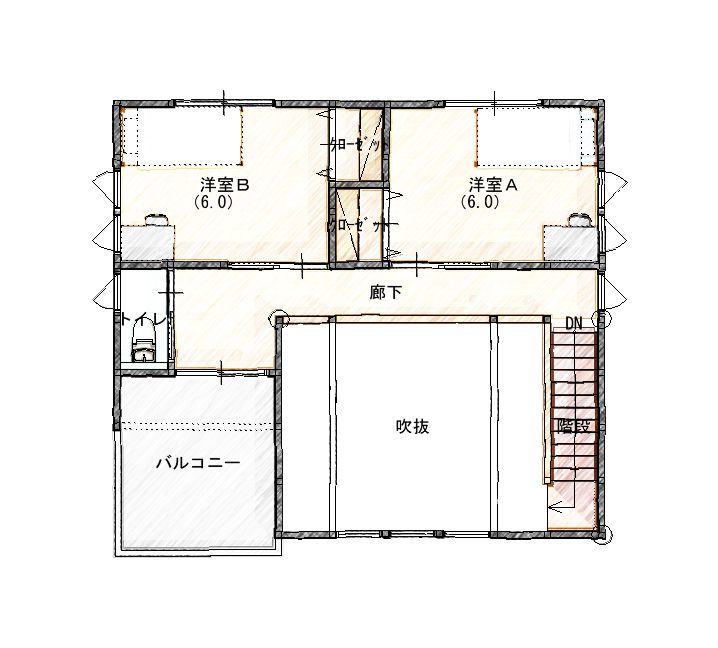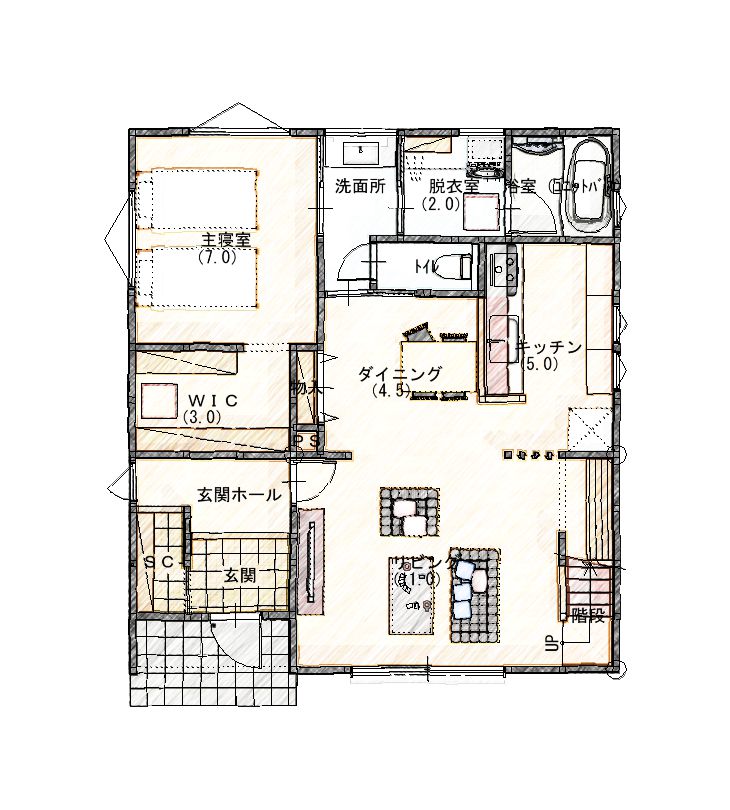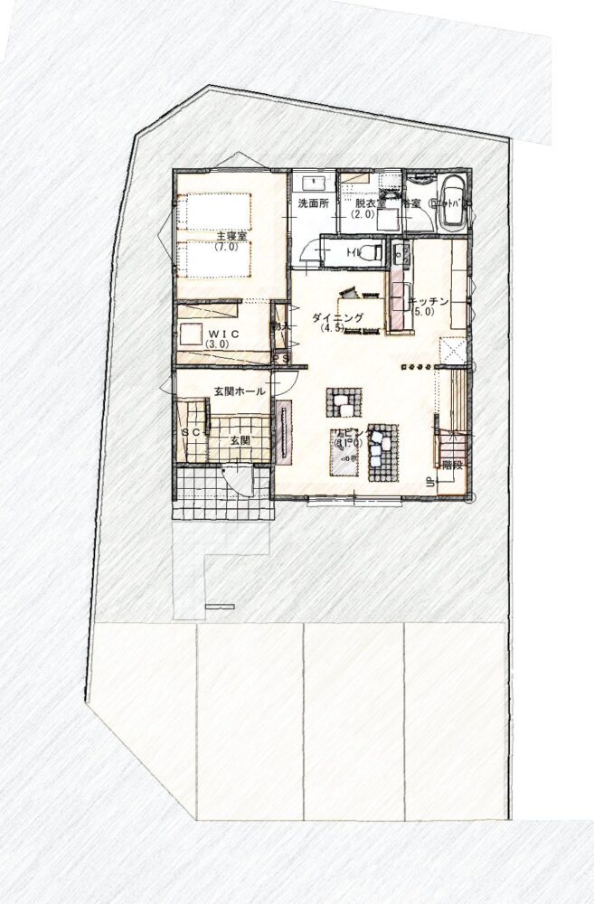 間取り 3LDK+WIC+吹抜け 駐車場 有 3台可能