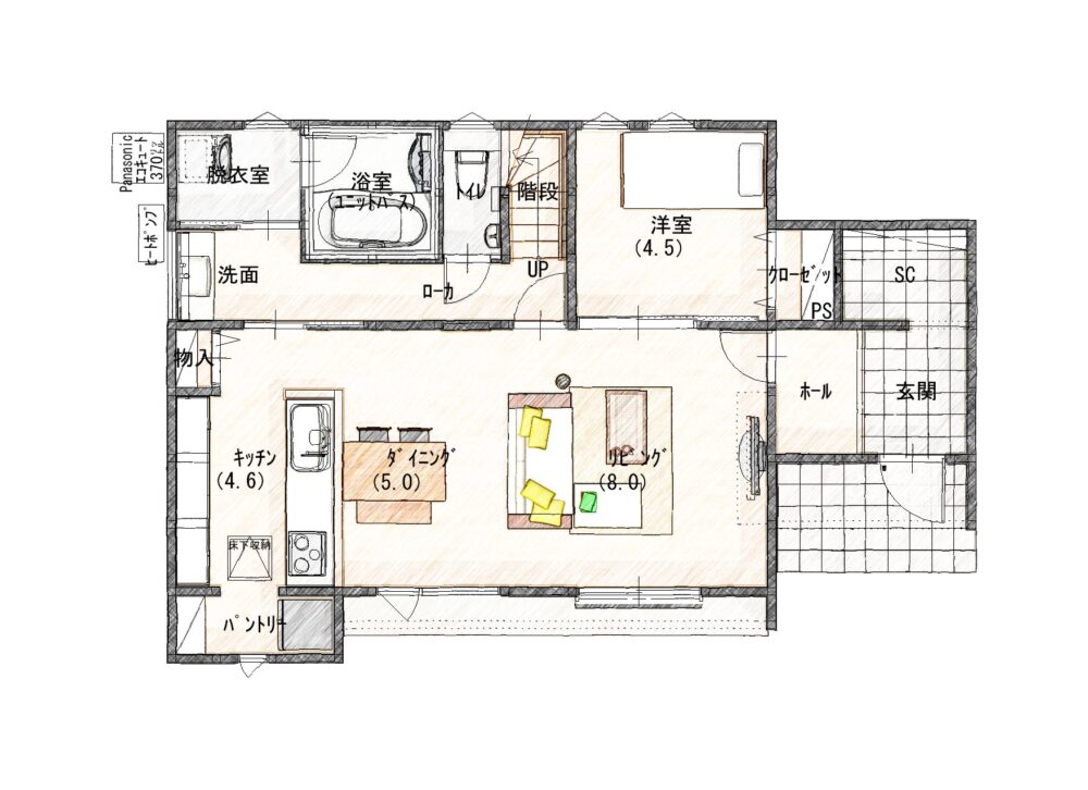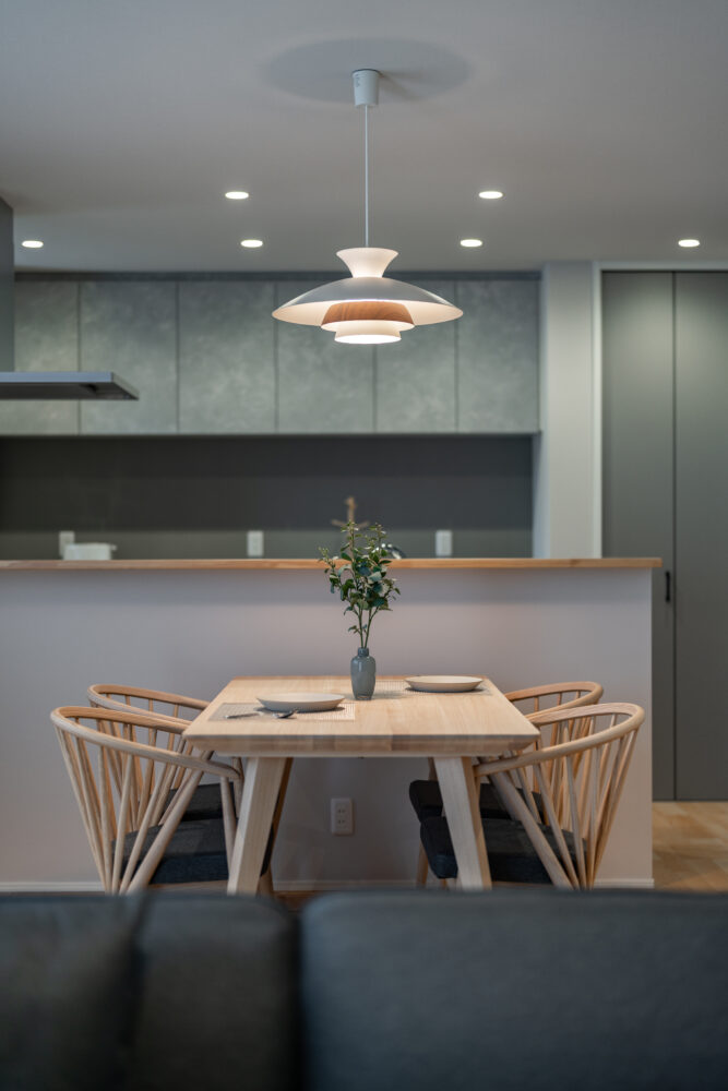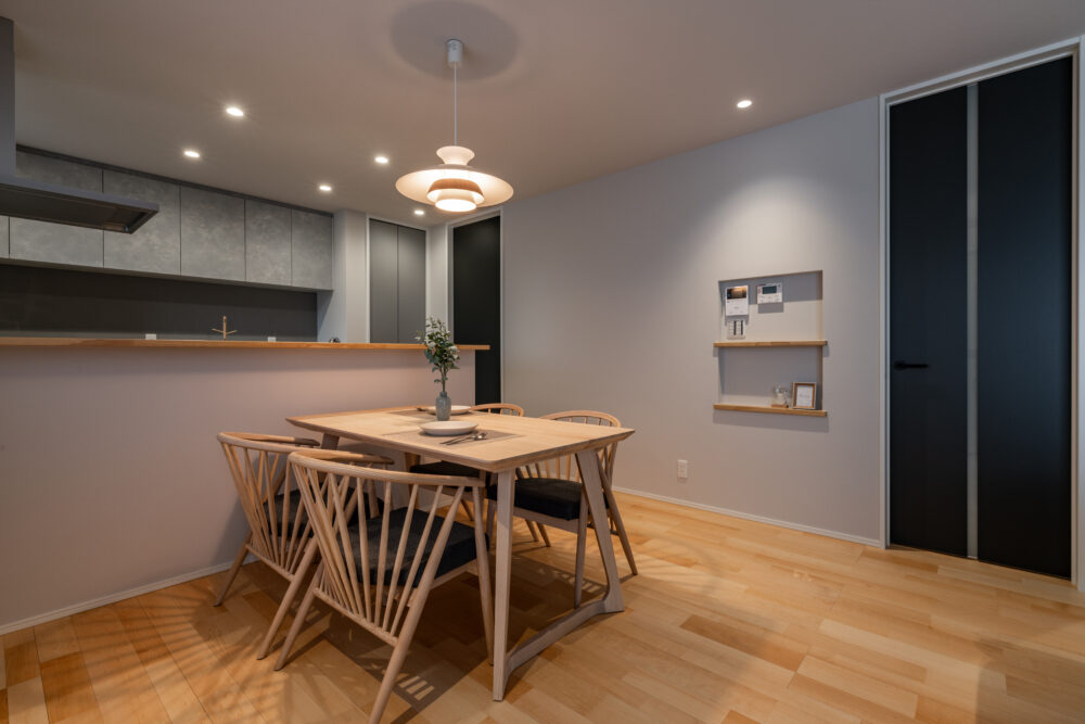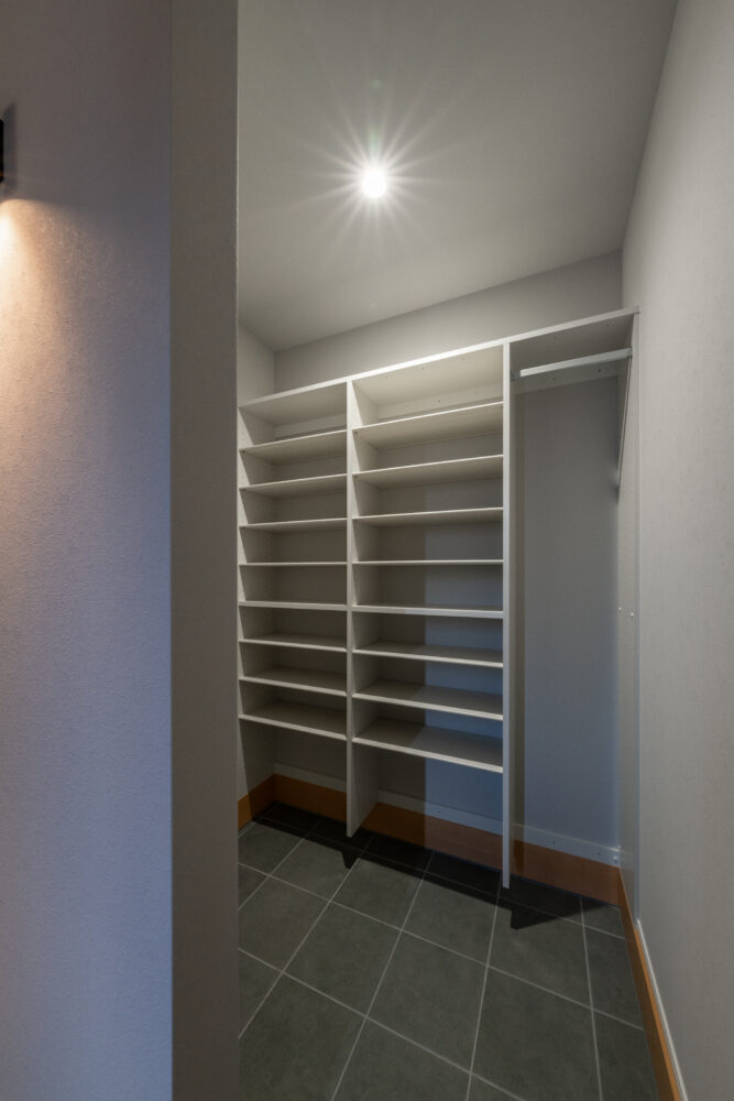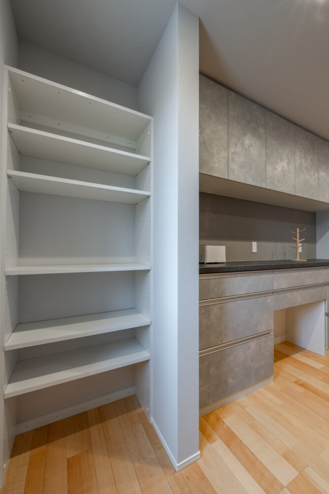 キッチン奥には冷蔵庫も隠せるパントリーを完備し、収納力も十分。