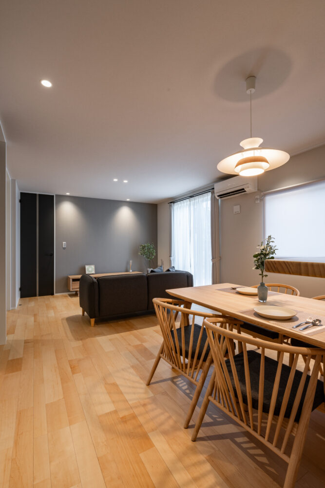 直線型のLDKは開放感があり、隣接する洋室は家族の気配を感じられる便利な空間。