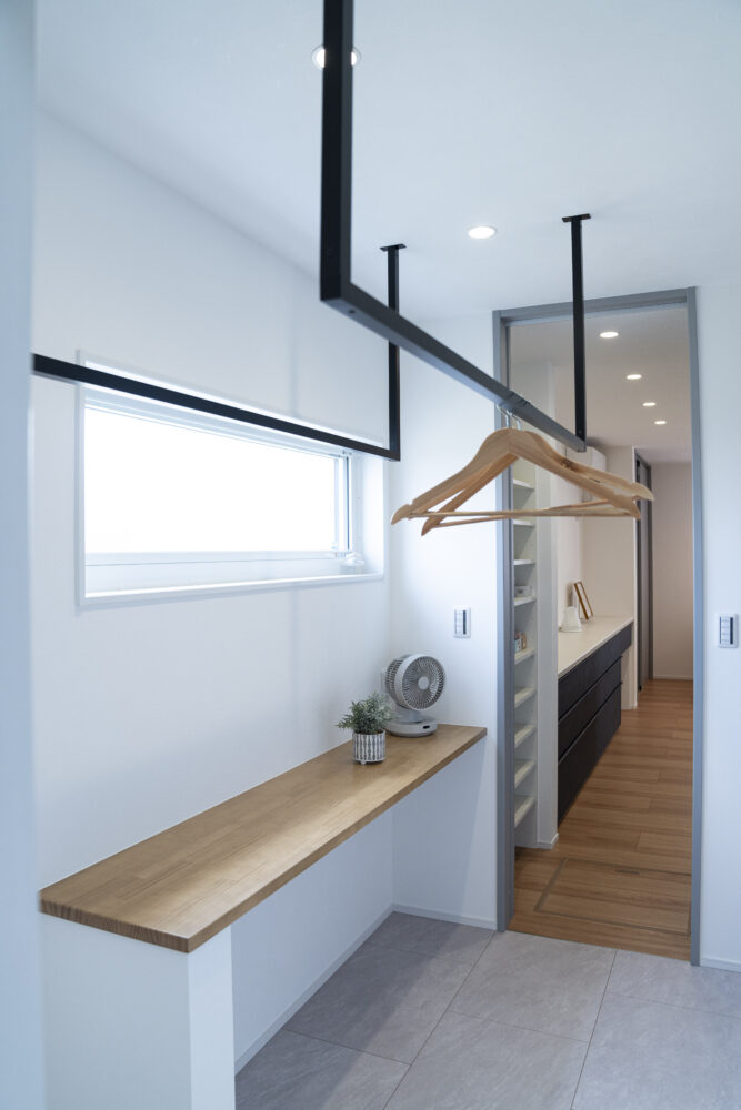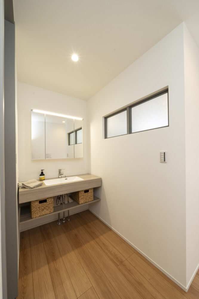 手洗いや汚れものの予洗い、加湿器や除湿機の水の補充や排水等、利用する場面が多い洗面室を間取りの中心にしました!