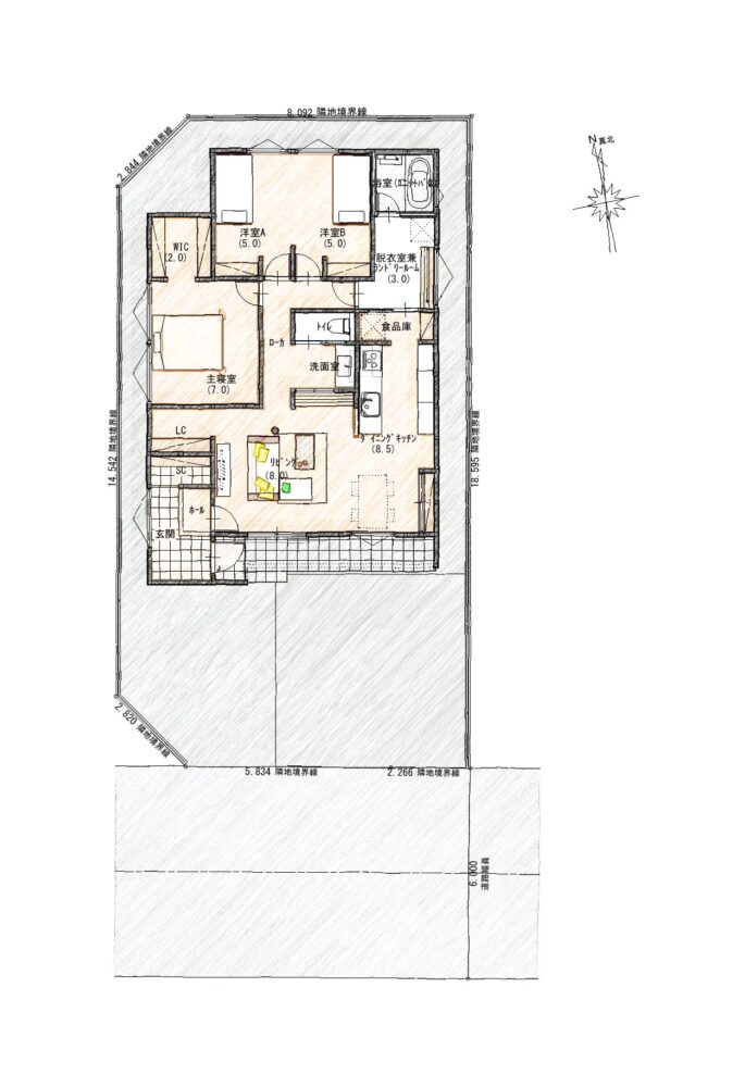 建物面積 | 88.60㎡(26.75坪) | 土地面積 | 183.47㎡(55.49坪) |