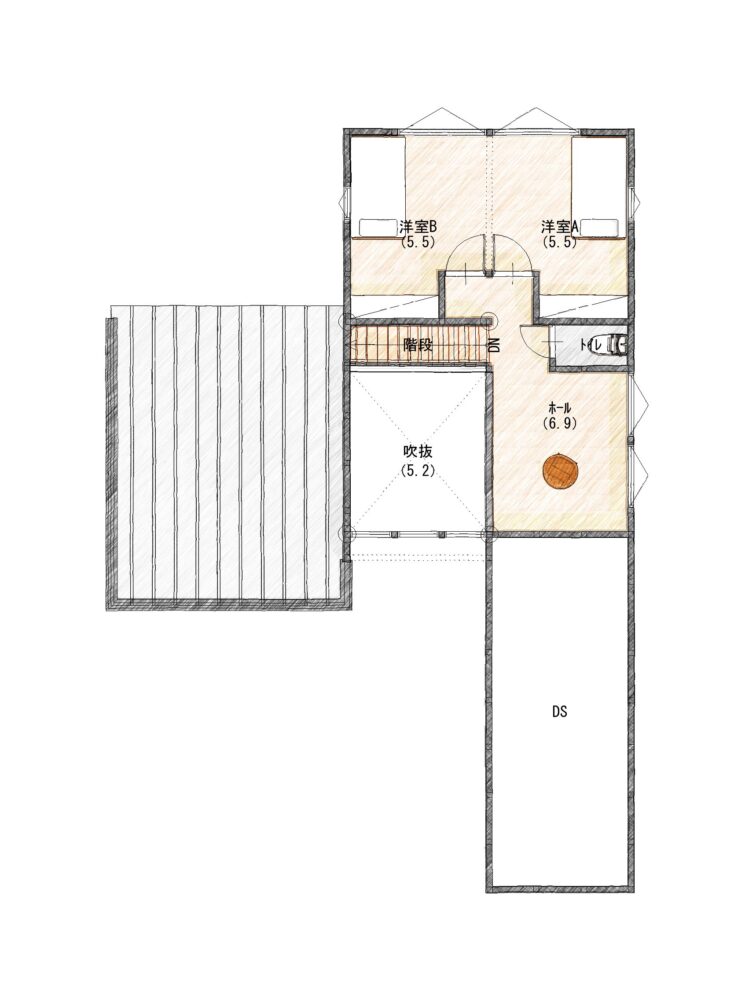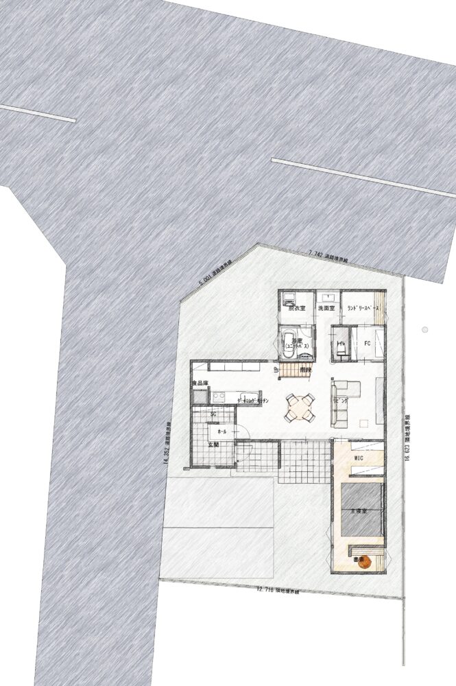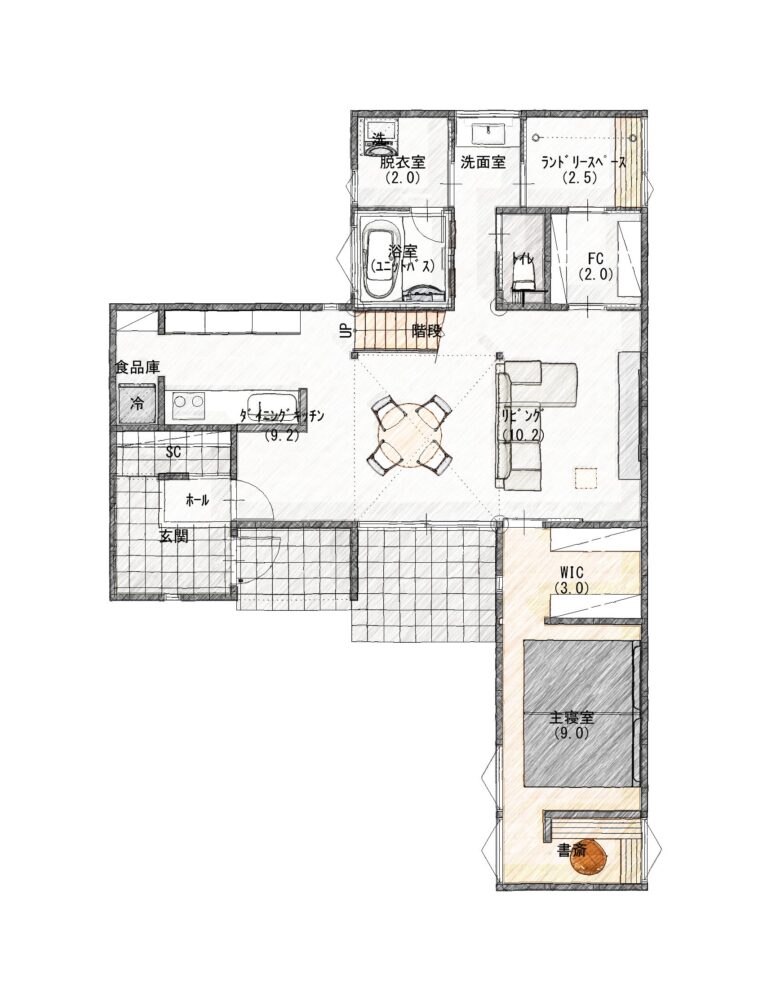 1階に主寝室を設けた半平屋の間取りは、落ち着きある暮らしを実現します。