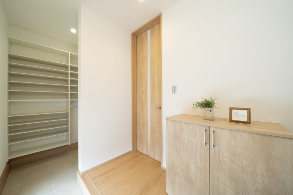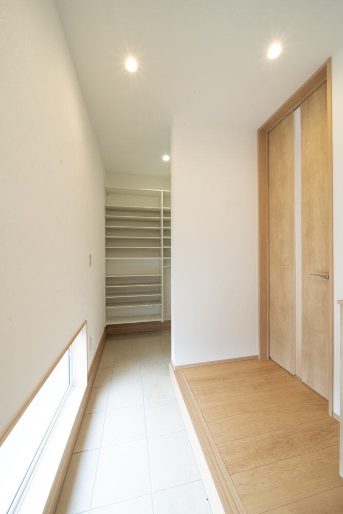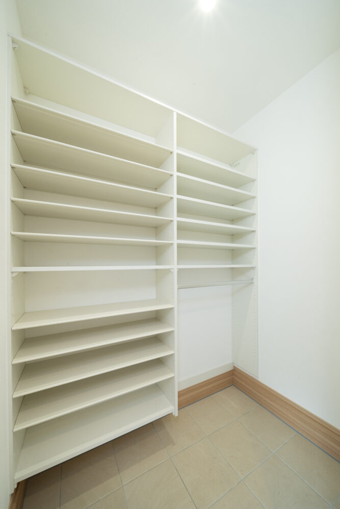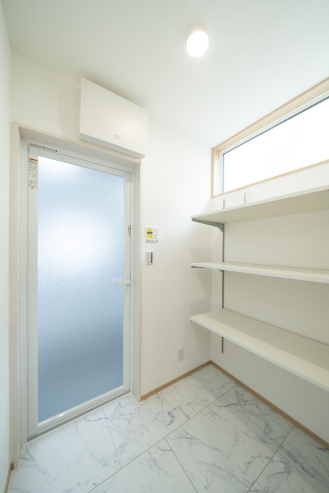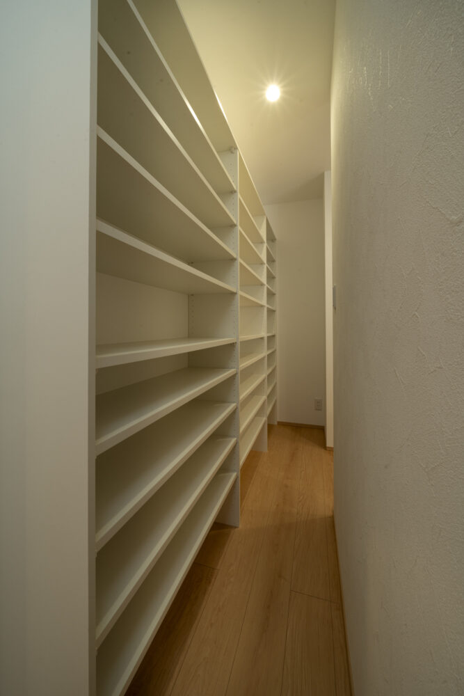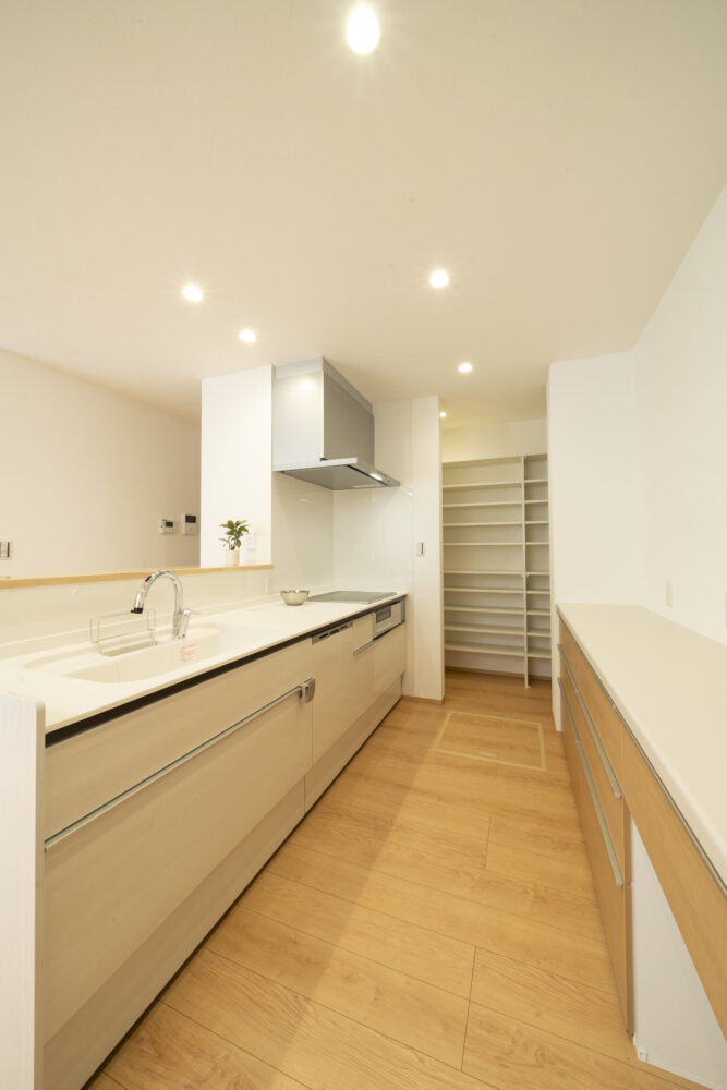 キッチンの奥には、食料品や生活必需品をすっきり収納できる便利なパントリーも完備。