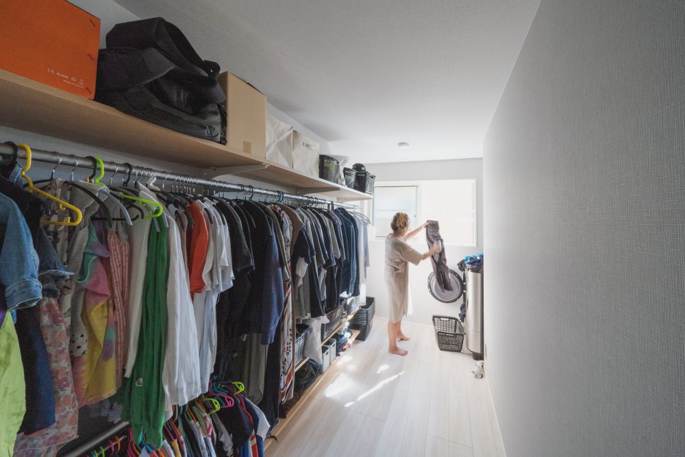 お子さんが3人いて、洗濯物がたくさん。干したり畳んだりが大変なので、色々考えた結果、洗濯機で洗濯から乾燥まで行い、畳まずハンガーにかける事で、家事をラクにしました。
