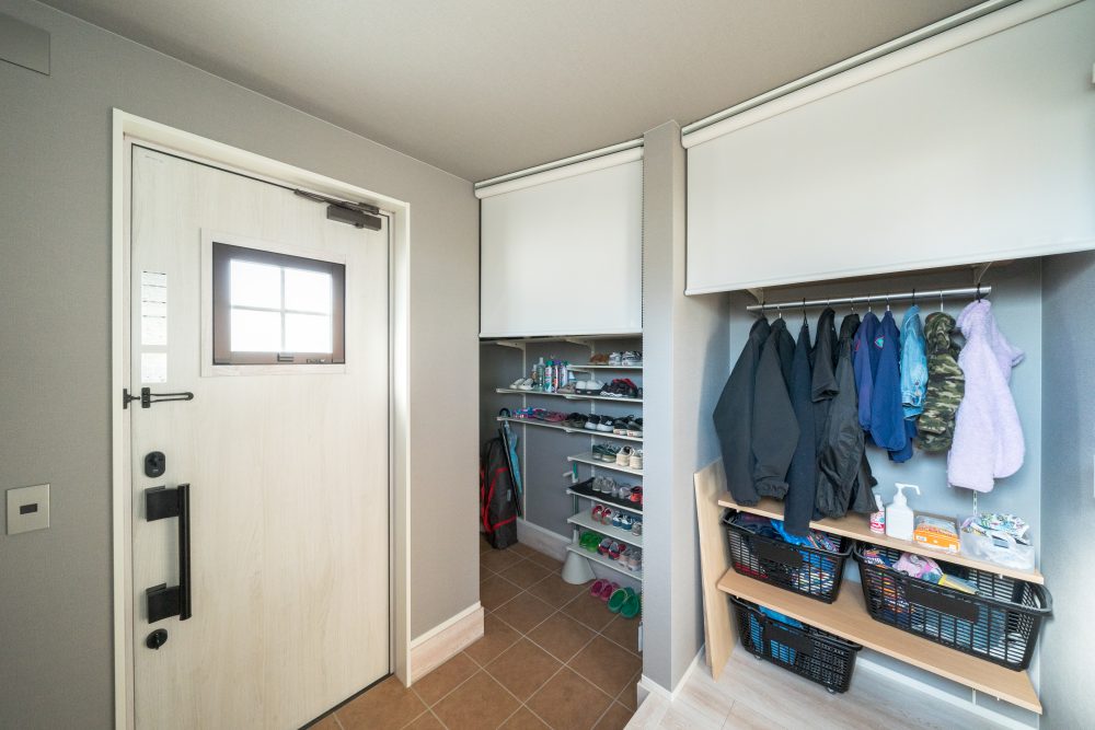 なるべく仕切りを無くし、オープンな玄関収納にしました。
