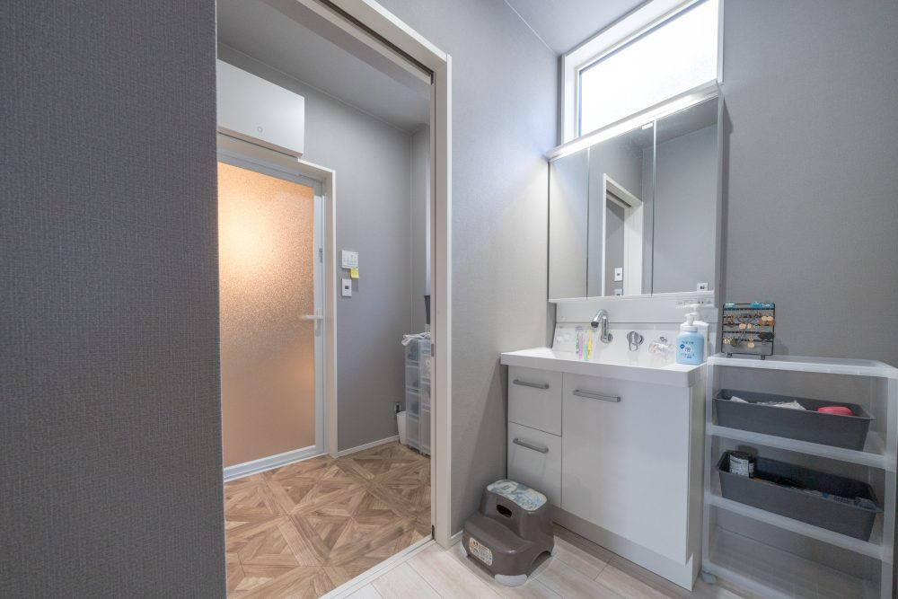 脱衣室は脱いだりするだけなので、最小限のスペースと考え、1帖に。意外と余裕でした。