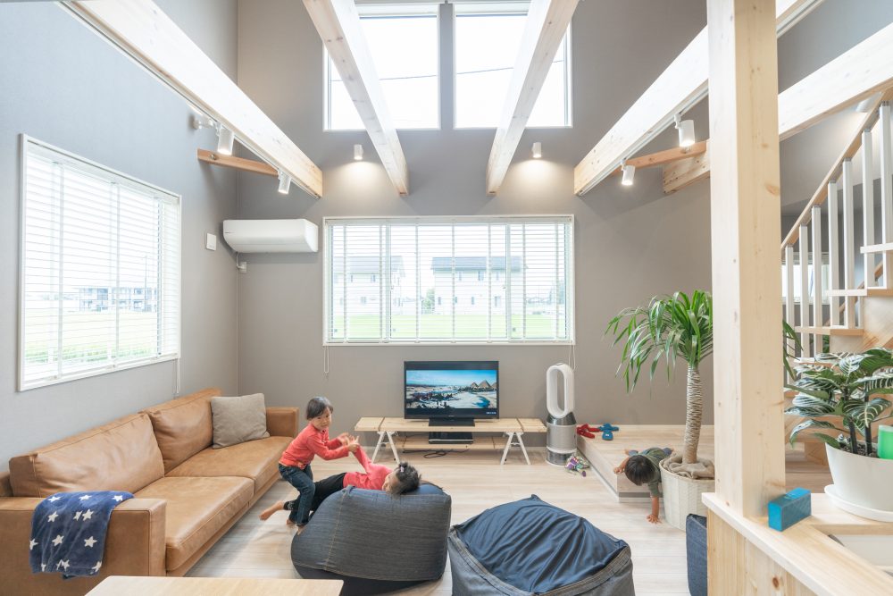 くつろげる空間として、人の動線をリビング内に来ないように考えました。また、模様替えを頻繁にしたいので、掃き出しの窓がないことで、ソファーの位置など、自由に向きが変えられます。
