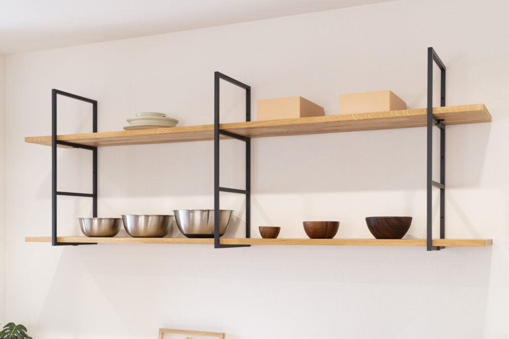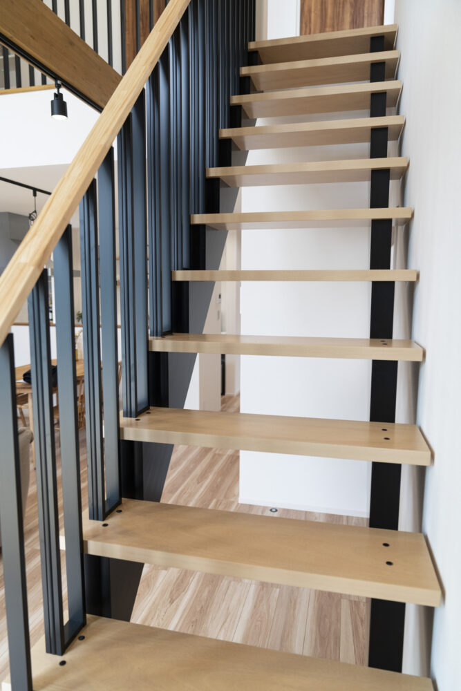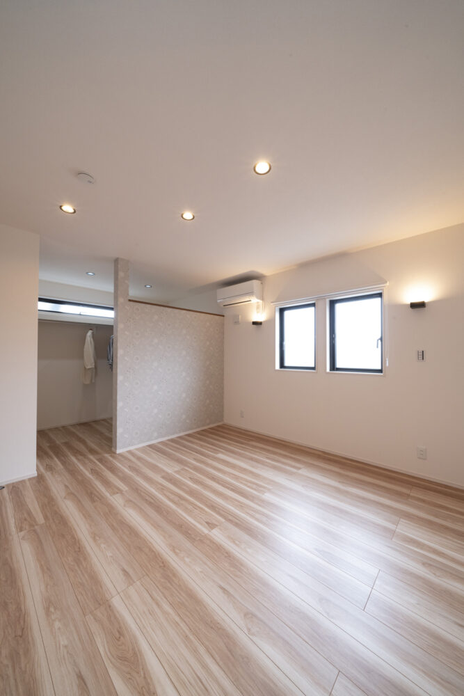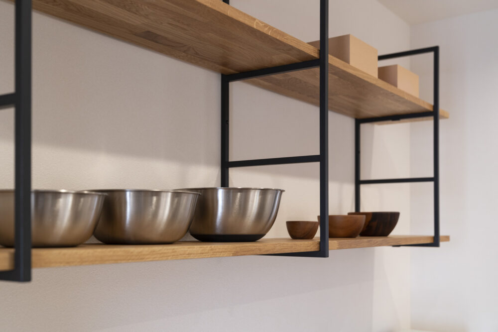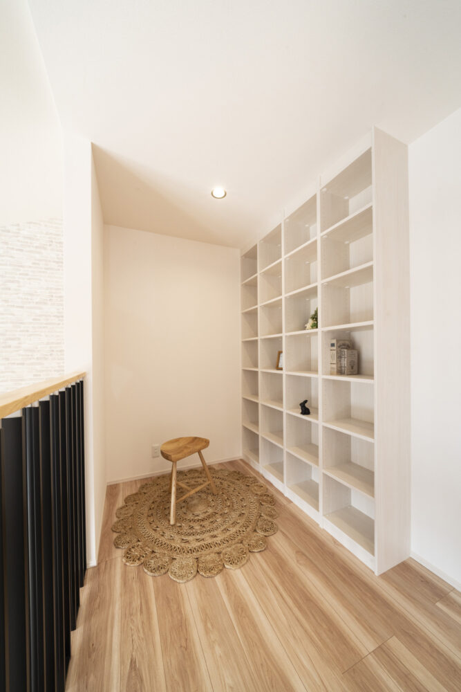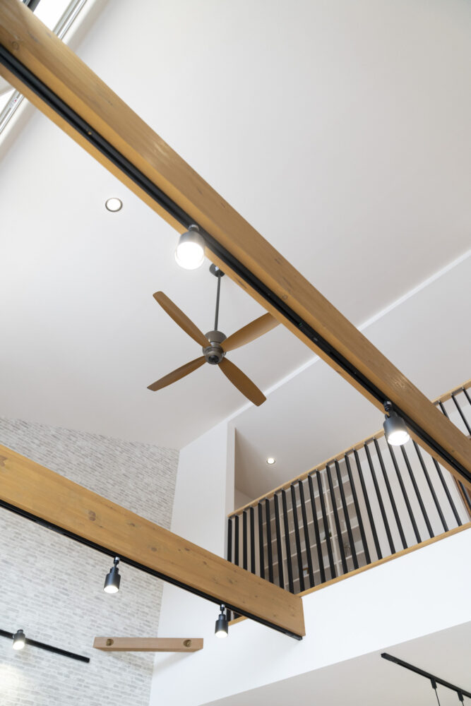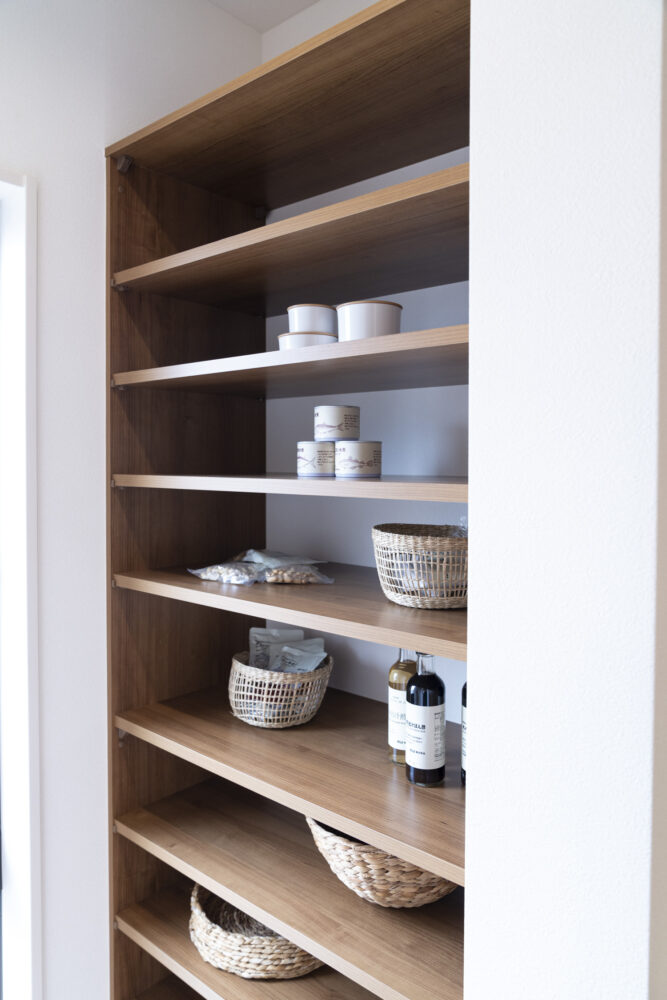 "Piatta(ピアッタ)"モデルハウスとして建てられた半平屋の家。LDKが1直線になっており、キッチンで家事をしていてもリビングを見渡すことができます。リビング上部が吹き抜けになっており、解放感も抜群。