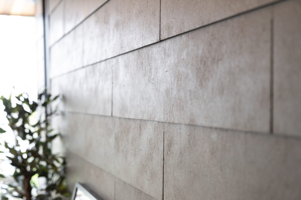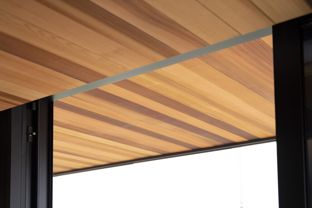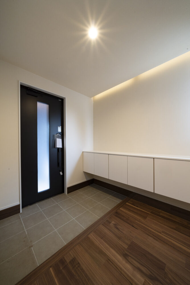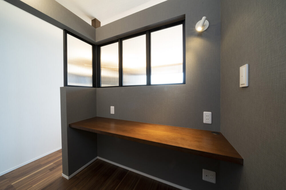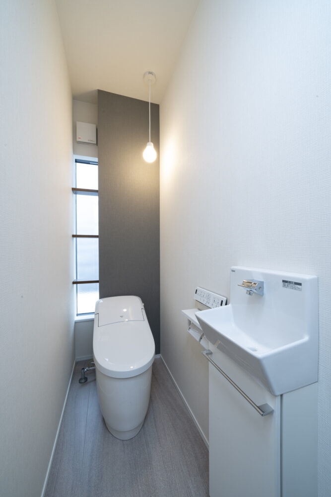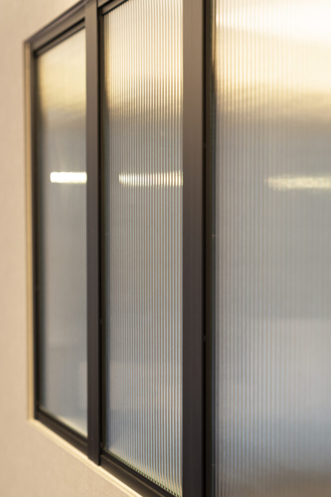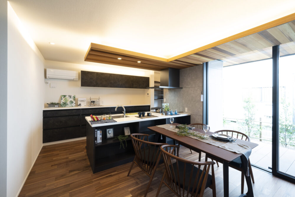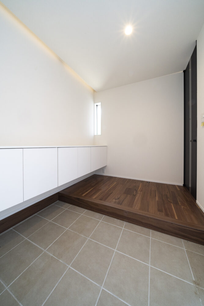 むぎくらのモデルハウスとして建てられた平屋です。建物は25坪で2LDKとコンパクトでありながらも、思わず目が引かれてしまうような存在感のある外観。リビング正面の壁はクロスではなく外壁が続いており、凹凸があるので光の陰影がとても綺麗。
