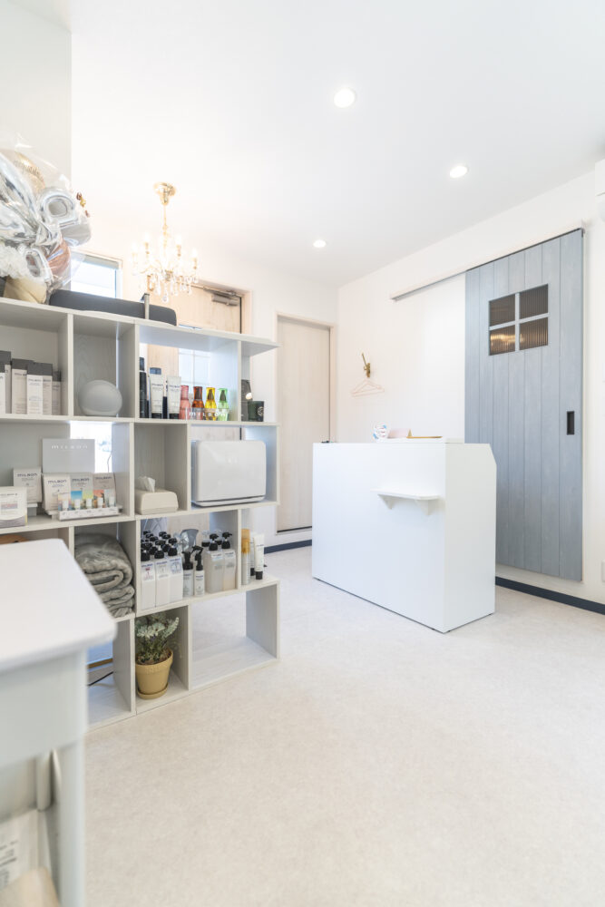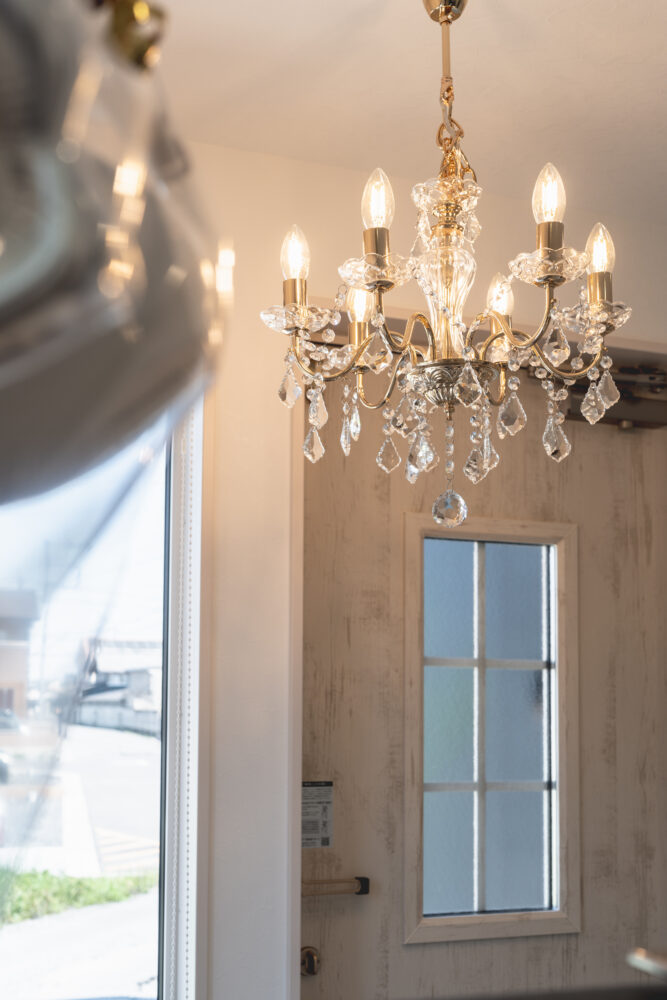 そちらとは対照的に、サロンの方は白を基調としたシンプルで明るい空間に。きらきらと光るシャンデリアが一日の特別感を演出します。