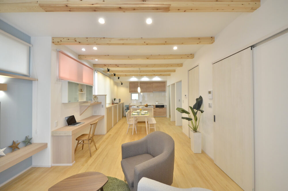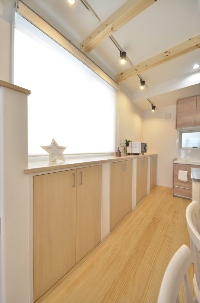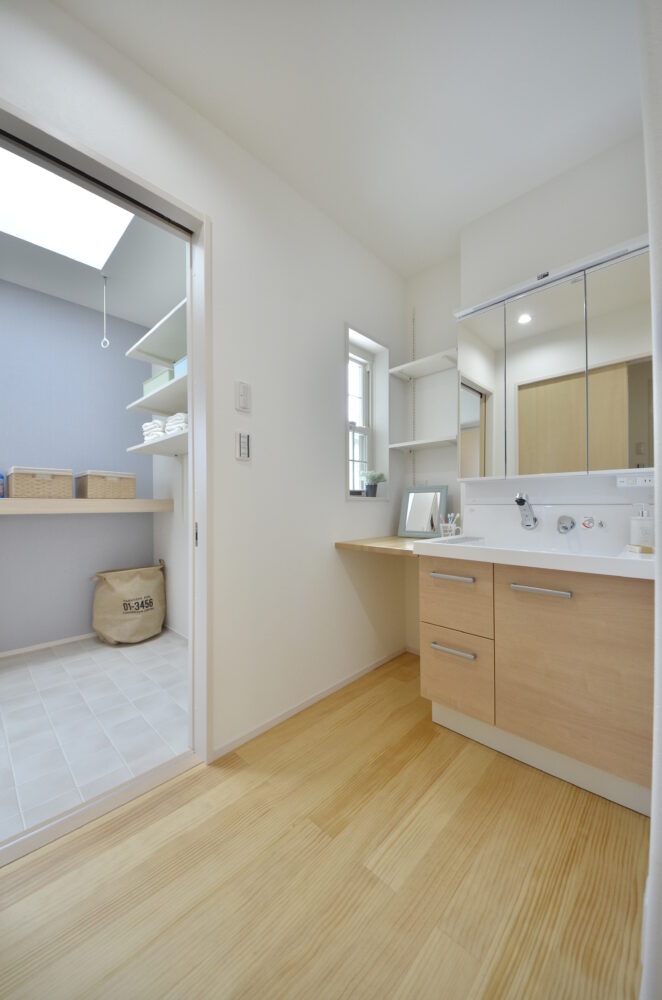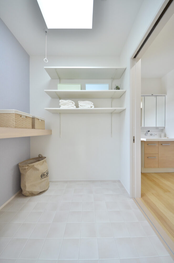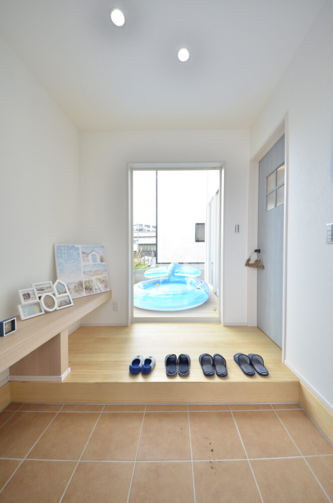 ママの家事動線と収納力が豊富。玄関入ってすぐの収納は、シューズクロークから各々のロッカー収納になっていて、お出かけ前の準備が出来て便利。北玄関に関わらず、日当たりの良さも、ポイントの一つです。