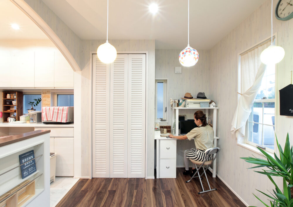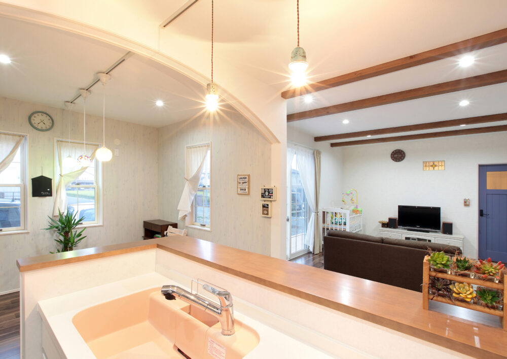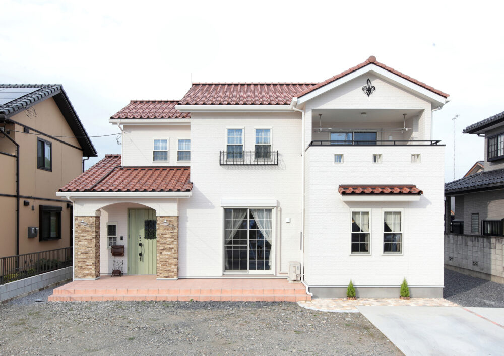 洋風の格子窓や、アイアンの妻飾りが印象的な外観。プロヴァンス風をテーマに、各所に奥様とご主人のこだわりが詰まっています。
