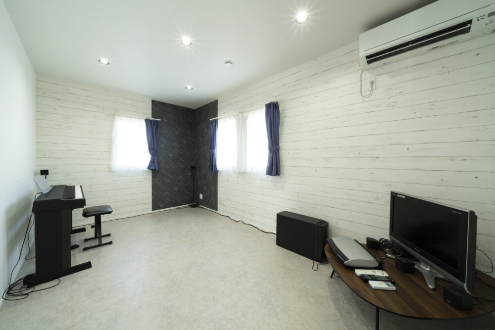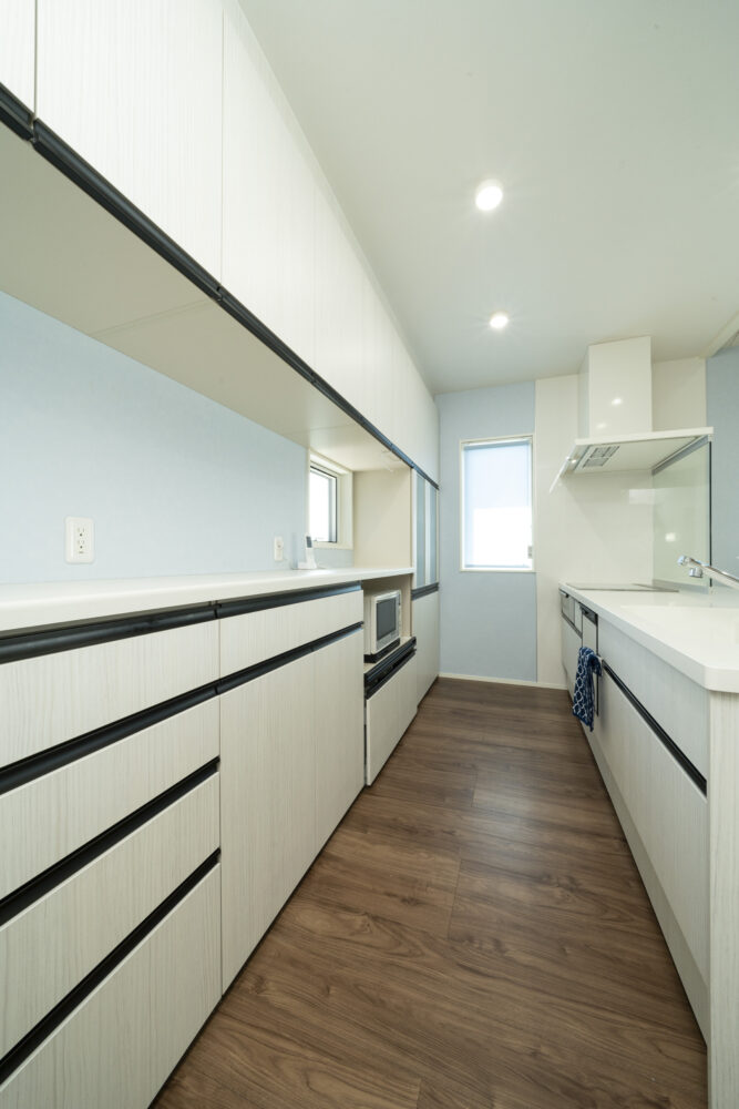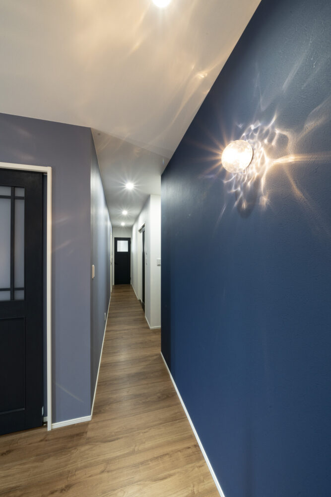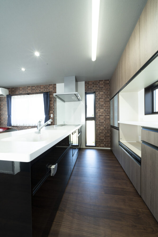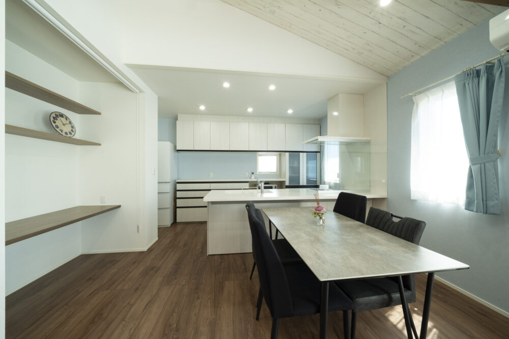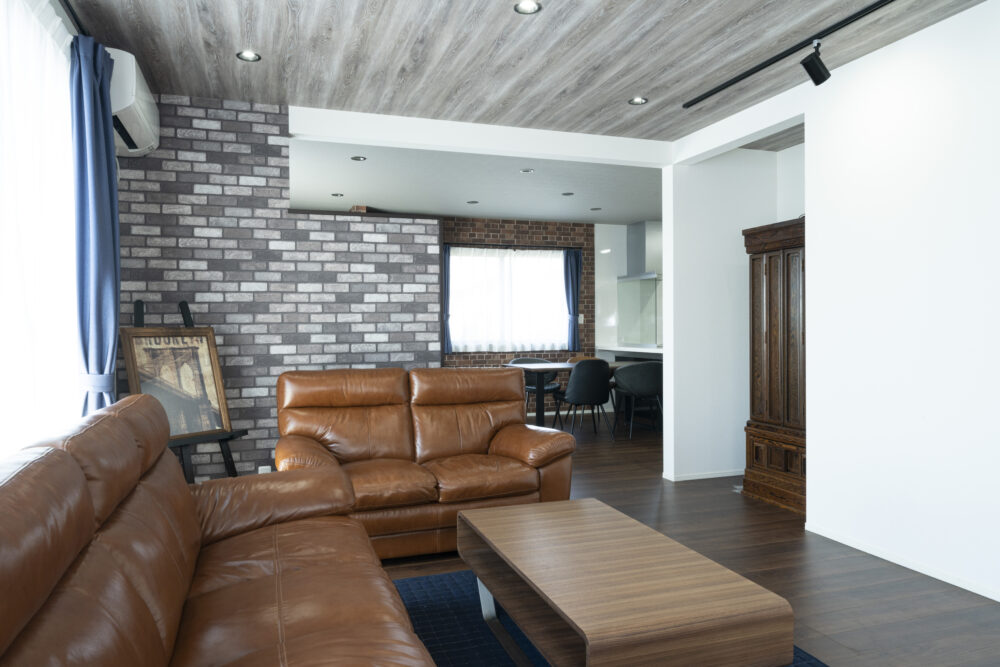 2世帯が住まう、広々とした家。LDKを各階に配置し各世帯の要望をぎゅっと詰め込みました。お客様こだわりの照明は、本物の鹿の角を使ったオーダーメイドだそう。