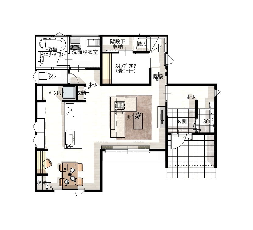 簗瀬町 23号棟 にはリビングと対面するスキップフロアを設けました。