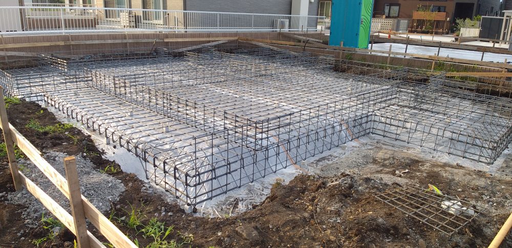 配筋を組み、第三者機関の検査を受けて合格した後、次の工程へと進んでいきます。