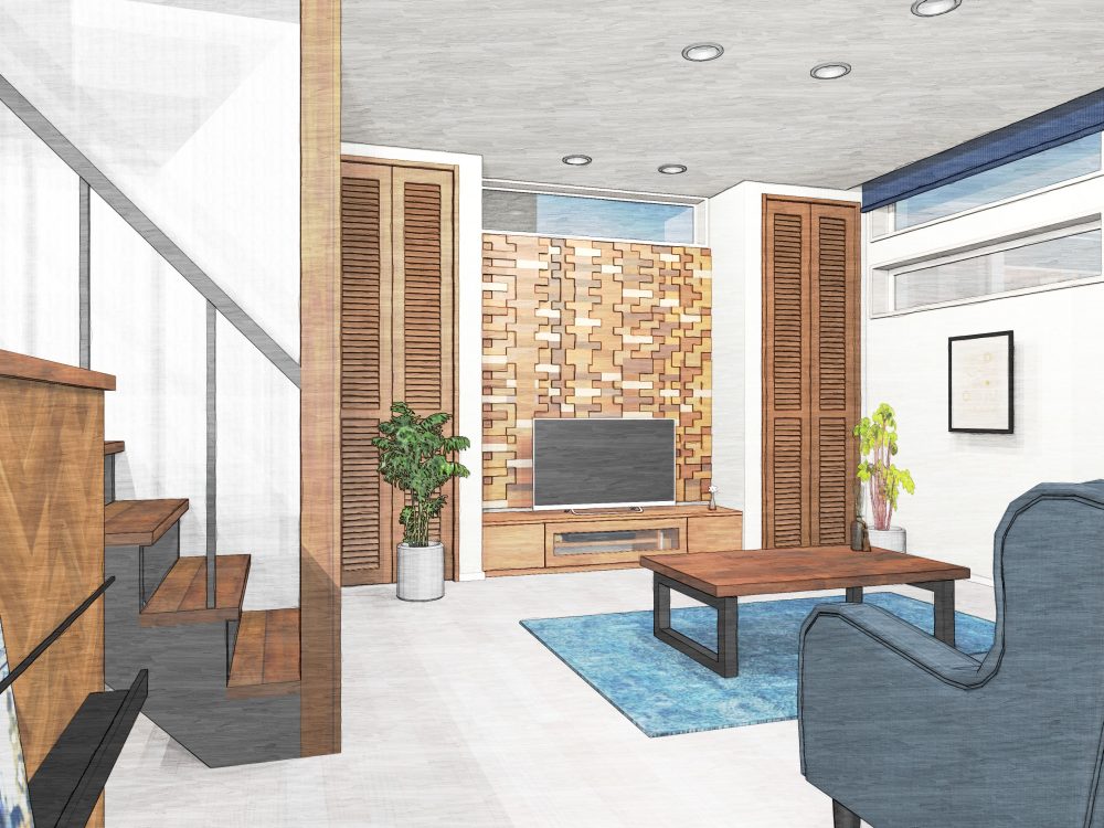 今回のコンセプトが西海岸スタイルの家という事をテーマに図面を作成していきました。