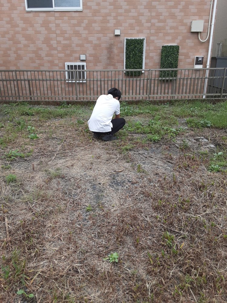 業者の方に各分譲地の草刈りをしていただき、その草を1週間かけて同期の古川と