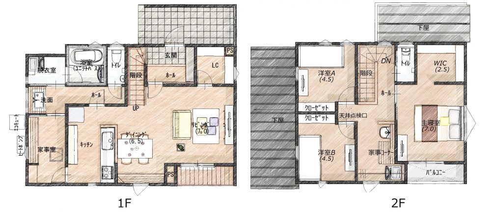 1階、2階、それぞれ洗濯機置き場ありますので、洗濯する物や、家族の誰の物を洗うかなど、それぞれ分けてみてもいいかもしれません。