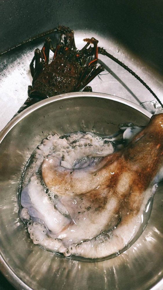 写真は先週食べたタコとエビです。何とかして飼育したかったのですが駄目でした。