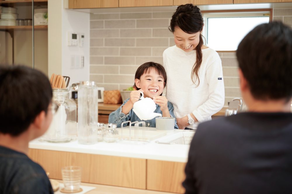 「家族とコミュニケーションを取りながら家事ができる」住まいとして、宇都宮の子育て世代に選ばれています。