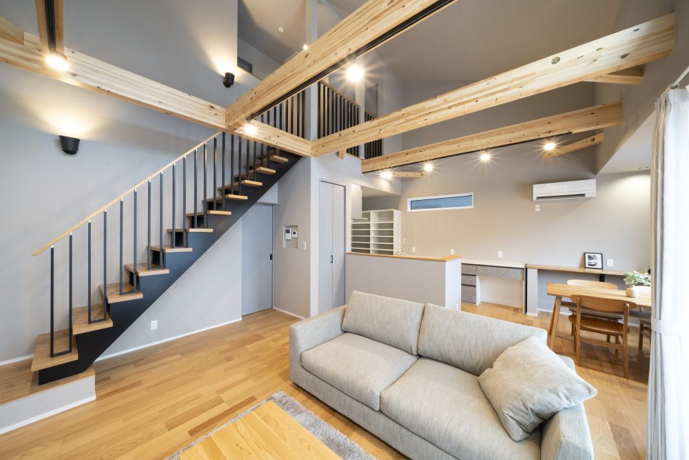 次に重要なのが、間取りと空気の流れです。例えば、リビング階段や吹き抜けは開放感がありますが、計画次第では冷暖房効率に影響を与えることもあります。ただし、断熱・気密が確保されていれば、こうした間取りも無理なく成立します。むぎくらでは、間取りのデザインと性能を切り離さず、同時に検討することを大切にしています。