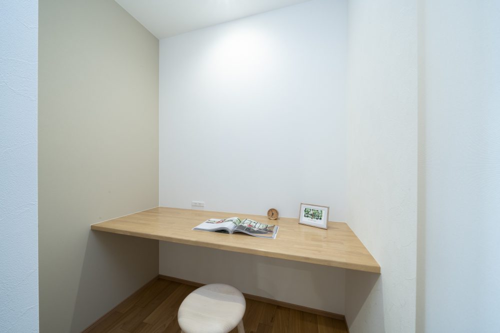 リビングに書斎を設けることで、専用の作業スペースを確保できます。家族の声が聞こえやすくなり、安心感も得られます。