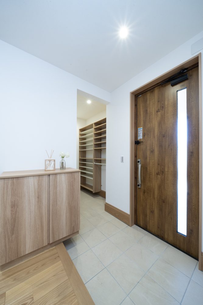 玄関奥にあるシューズクロークは靴だけでなく、傘やコート、アウトドア用品なども収納できるため、玄関が散らかりにくくなります。